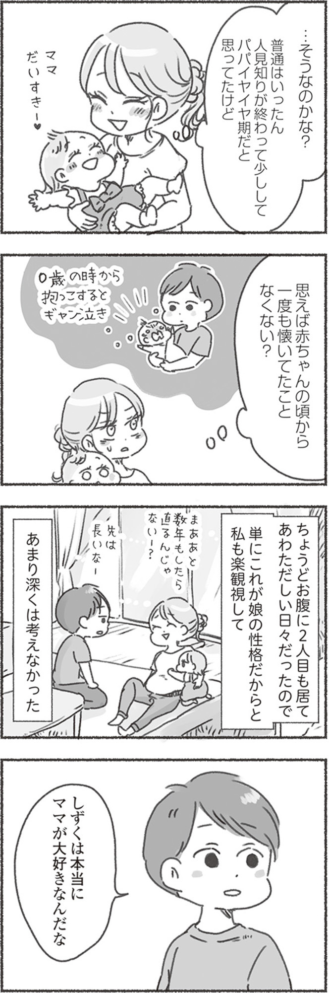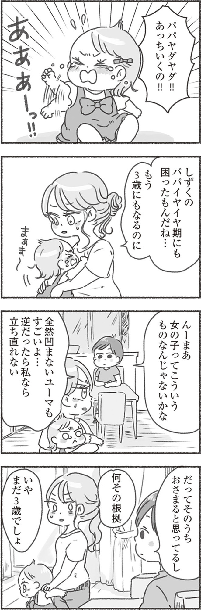 3歳になる娘は夫に一度も懐いたことがない。性格だと思って楽観視していたけれど…【夫と心が通わない #7】 2025.11.30 LOVE 家族関係発達障害夫と心が通わない カサンドラ症候群で笑えなくなった私が離婚するまでの話 試し読みマンガ試し読み離婚夫婦関係試し読みマンガ 長い結婚生活の中、夫が心の底から笑ったことはあったのだろうか? 結婚してから夫に感じていた謎の違和感。 夫と会話がすれ違うたびに、妻は「全て私が悪い」と思い込み、心身ともにボロボロになってゆく…。 「カサンドラ症候群」に苦しむひとりの女性が、悩み、もがき、たどり着いた、本当の自分を取り戻すための道とは――。 ※本記事は鳥頭ゆば著、アゴ山原案の書籍『夫と心が通わない カサンドラ症候群で笑えなくなった私が離婚するまでの話』から一部抜粋・編集しました。 パパに懐かない ▶Renta『夫と心が通わない カサンドラ症候群で笑えなくなった私が離婚するまでの話』 ▶30日間無料▶ Amazonの読み放題をチェック! 【99円で2カ月間】 Audible が無制限で聴ける! ▶楽天KOBO 初回購入金額のポイント最大70倍! スポンサーリンク 続きを読む 次のページへ >> 1 2 3 【注目の記事】 1番対策が難しかった…!頬のたるみやほうれい線につながるNG食事習慣最後のひとつ 冬の寒さに負けない!そろそろ準備したい中綿アウター×【ユニクロ】バズりデニムの着こなし【40代の毎日コーデ】 【ユニクロ】カシミヤタッチニットで魅せる!旬のブラウンを効かせた洗練肩掛けテク【40代の毎日コーデ】 東大生が注意喚起!「鵜呑みにしてはいけない」SNSで「でたらめの受験情報」を発信する人の特徴とは 「東大受験が簡単!?」な難関私立高出身者。天才たちの受験勉強、その驚きの実態とは この記事は OTONA SALONE1 スポンサーリンク スポンサーリンク 【人気の関連記事】 【なぜどく#7 45歳・A子さん編】地方は独身男が少ない!40代でやっと気づいたこと 【なぜ彼女は独身なのか?40代独女の本音 ♯7】アラフォー独身のイラストレーターNobbyさんが、絶賛婚活中の編集長・アサミといっしょに、婚活中の独身女性と「私たちはな… 【なぜどく#8】42歳独女が月額10万のセレブ婚活サロンに登録した結果… 【なぜ彼女は独身なの?40代独女の本音 ♯8】アラフォー独身のイラストレーターNobbyさんが、絶賛婚活中の編集長・アサミといっしょに、婚活中の独身女性と「私たちはなぜ… 【なぜどく#13 45歳・ヨーコさん編】バリキャリ女子は、婚活に迷走する? アラフォー独身のイラストレーターNobbyさんが、絶賛婚活中の編集長・アサミといっしょに、婚活中の独身女性と「私たちはなぜ婚活し続けるのか」まったり語り合う会のレポ…