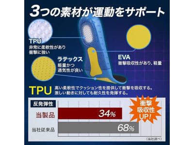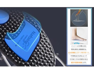 普通のインソールとの違いは、「衝撃を吸収して足腰の負担を軽減」「長時間の立ち仕事や歩行でも疲れづらく」するための技術が詰まっている点。