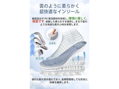 まるで雲!? やわらか&弾力のあるふわもこ1.8cmの厚底で、腰やひざへの衝撃を吸収、負担を軽減。足裏マッサージ効果も