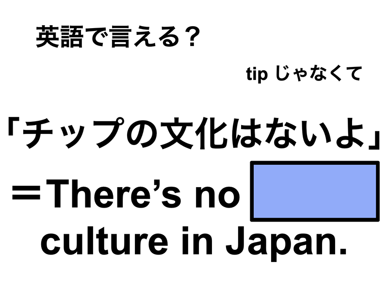 「チップの文化はないよ」って英語で言えますか?