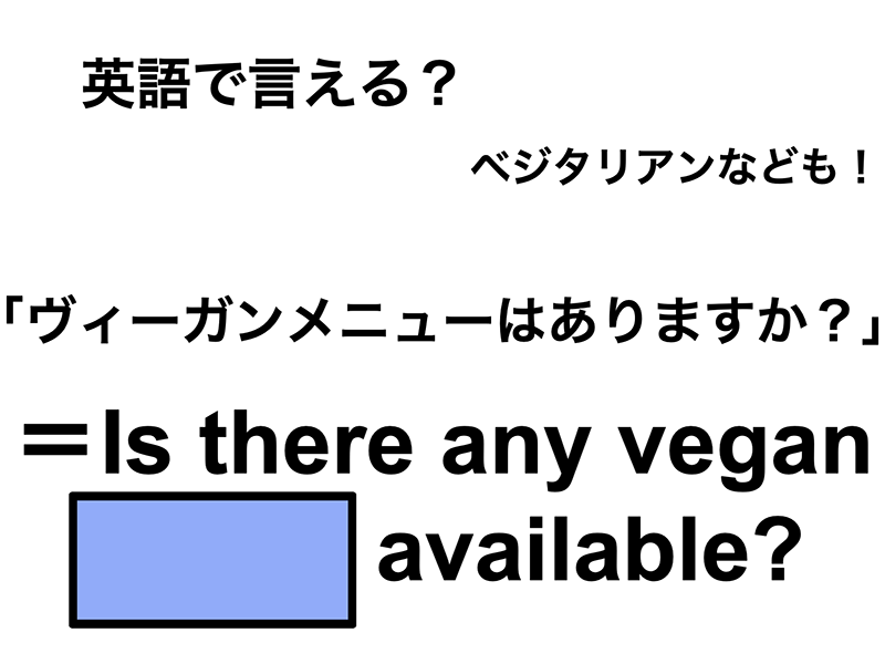「ヴィーガンメニューはありますか?」って英語で言えますか?