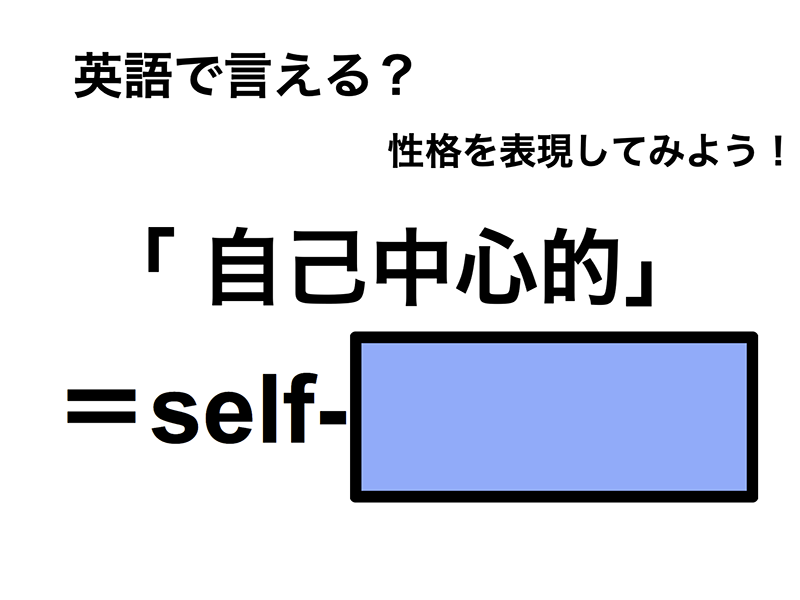 selfish(セルフィッシュ) = わがままで人に配慮しない(やや子どもっぽい印象)