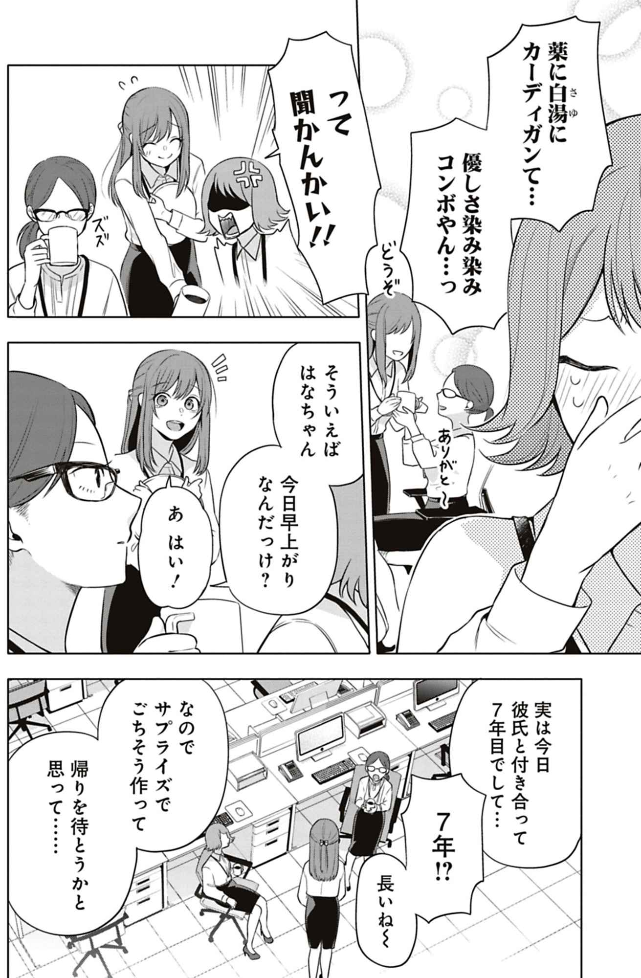 薬に白湯にカーディガンて…優しさ染みすぎる!どんだけ気が利く女子なのよ【すきだから、だよ #4】 2025.11.25 LOVE 試し読みすきだから、だよ 試し読みマンガマンガ試し読み こんな愛され方、想定外。 馬酔木(あせび)はなは男に尽くしちゃうタイプの不遇女子。 彼氏に浮気され家を飛び出したところに、会社の先輩・青木と出くわす。イケメンで仕事ができて、でも普段はちょっぴり塩対応な青木だが、意外にも傷心のはなに優しく寄り添い「俺の住んでるシェアハウスに来るのはどう?」と提案してくれる。だがそれは、オモテの顔に過ぎず…。 新感覚・怖&甘オフィスラブサスペンス、開幕! ※本記事は、山口えいと著の『すきだから、だよ』から一部抜粋・編集しました。 ▶Renta『すきだから、だよ1』 ▶30日間無料▶ Amazonの読み放題をチェック! 【99円で2カ月間】 Audible が無制限で聴ける! ▶楽天KOBO 初回購入金額のポイント最大70倍! スポンサーリンク 続きを読む 次のページへ >> 1 2 3 4 【注目の記事】 1番対策が難しかった…!頬のたるみやほうれい線につながるNG食事習慣最後のひとつ 冬の寒さに負けない!そろそろ準備したい中綿アウター×【ユニクロ】バズりデニムの着こなし【40代の毎日コーデ】 【ユニクロ】カシミヤタッチニットで魅せる!旬のブラウンを効かせた洗練肩掛けテク【40代の毎日コーデ】 東大生が注意喚起!「鵜呑みにしてはいけない」SNSで「でたらめの受験情報」を発信する人の特徴とは 「東大受験が簡単!?」な難関私立高出身者。天才たちの受験勉強、その驚きの実態とは この記事は OTONA SALONE3 スポンサーリンク スポンサーリンク 【人気の関連記事】 【なぜどく#7 45歳・A子さん編】地方は独身男が少ない!40代でやっと気づいたこと 【なぜ彼女は独身なのか?40代独女の本音 ♯7】アラフォー独身のイラストレーターNobbyさんが、絶賛婚活中の編集長・アサミといっしょに、婚活中の独身女性と「私たちはな… 【なぜどく#8】42歳独女が月額10万のセレブ婚活サロンに登録した結果… 【なぜ彼女は独身なの?40代独女の本音 ♯8】アラフォー独身のイラストレーターNobbyさんが、絶賛婚活中の編集長・アサミといっしょに、婚活中の独身女性と「私たちはなぜ… 【なぜどく#13 45歳・ヨーコさん編】バリキャリ女子は、婚活に迷走する? アラフォー独身のイラストレーターNobbyさんが、絶賛婚活中の編集長・アサミといっしょに、婚活中の独身女性と「私たちはなぜ婚活し続けるのか」まったり語り合う会のレポ…