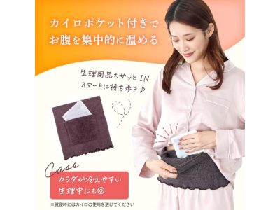 【③「お腹」温活】ふわもこ腹巻をつけるだけで+4.1℃の実験結果も! 温圧素材とCICA配合生地で「寝ながら美容」。やさしい肌ざわりと安心感。カイロを入れられるポケットつき♪