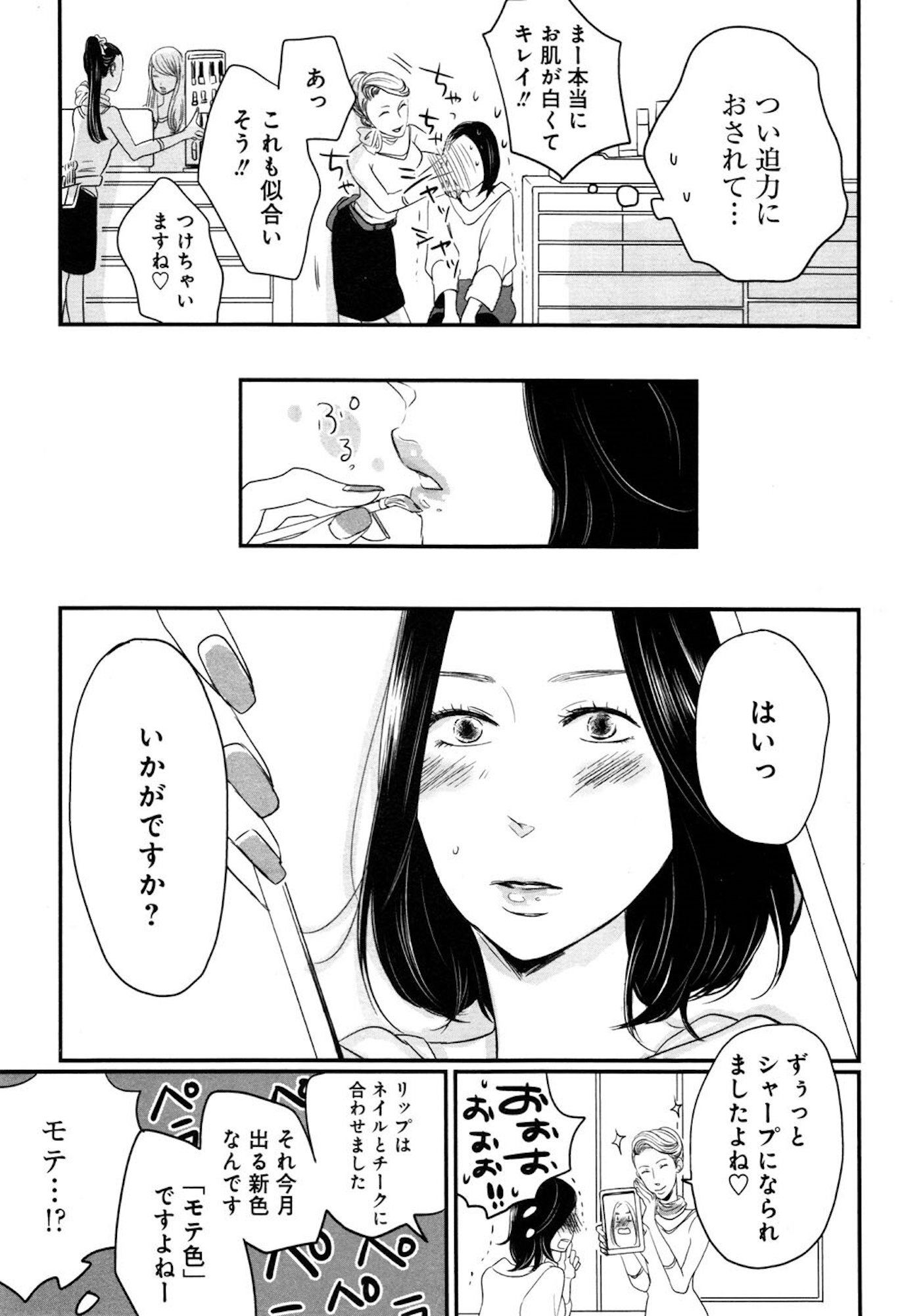 モテ色リップで垢抜けた!? 美容部員さんの魔法で私が変わった日【リメイク #2】 2025.11.22 LIFE マンガ独身リメイク 試し読み試し読みマンガ試し読み ©Ikumi Rotta 2013/MAG Garden ▶Renta!『リメイク』 ▶30日間無料▶ Amazonの読み放題をチェック! 【99円で2カ月間】 Audible が無制限で聴ける! ▶楽天KOBO 初回購入金額のポイント最大70倍! スポンサーリンク 次のページへ >> 1 2 3 【注目の記事】 「優しかったころの夫に戻って欲しい」その“希望”にすがり続けた妻が、裏切られ、心を壊していくまで 1番対策が難しかった…!頬のたるみやほうれい線につながるNG食事習慣最後のひとつ 冬の寒さに負けない!そろそろ準備したい中綿アウター×【ユニクロ】バズりデニムの着こなし【40代の毎日コーデ】 【ユニクロ】カシミヤタッチニットで魅せる!旬のブラウンを効かせた洗練肩掛けテク【40代の毎日コーデ】 東大生が注意喚起!「鵜呑みにしてはいけない」SNSで「でたらめの受験情報」を発信する人の特徴とは この記事は OTONA SALONE4 スポンサーリンク スポンサーリンク 【人気の関連記事】 40代。もう私、いつ死んだっていい気がするけど | あした死ぬには、#1 突然の病気。更年期障害。取れない疲労、お金の不安、これからの人生の迷い……。40代がぶち当たる「壁」をあまりにもリアルに描き出し、熱く静かな共感をさらった雁須磨子さ… 人前では「完璧な夫婦」を演じる夫。普段は私を無視してるって、誰も知らない【女40代はおそろしい#11】 40歳・フリーデザイナーの丸山ふさ子。 夫との攻防戦の末、「共働きだけど夫のほうが家事育児多め」という関係にやっとたどり着く。バリキャリ会社員のまい、起業家のかお… 年齢、たまに忘れてない?アラフォーあるあるが「共感しかない」と話題 「最近、若い頃と比べて何かが違う……」そんなモヤモヤを抱えているアラフォーのみなさん、必見!イラストレーターのRingoman(@ringo_fashion)さんがインスタグラムに投稿…