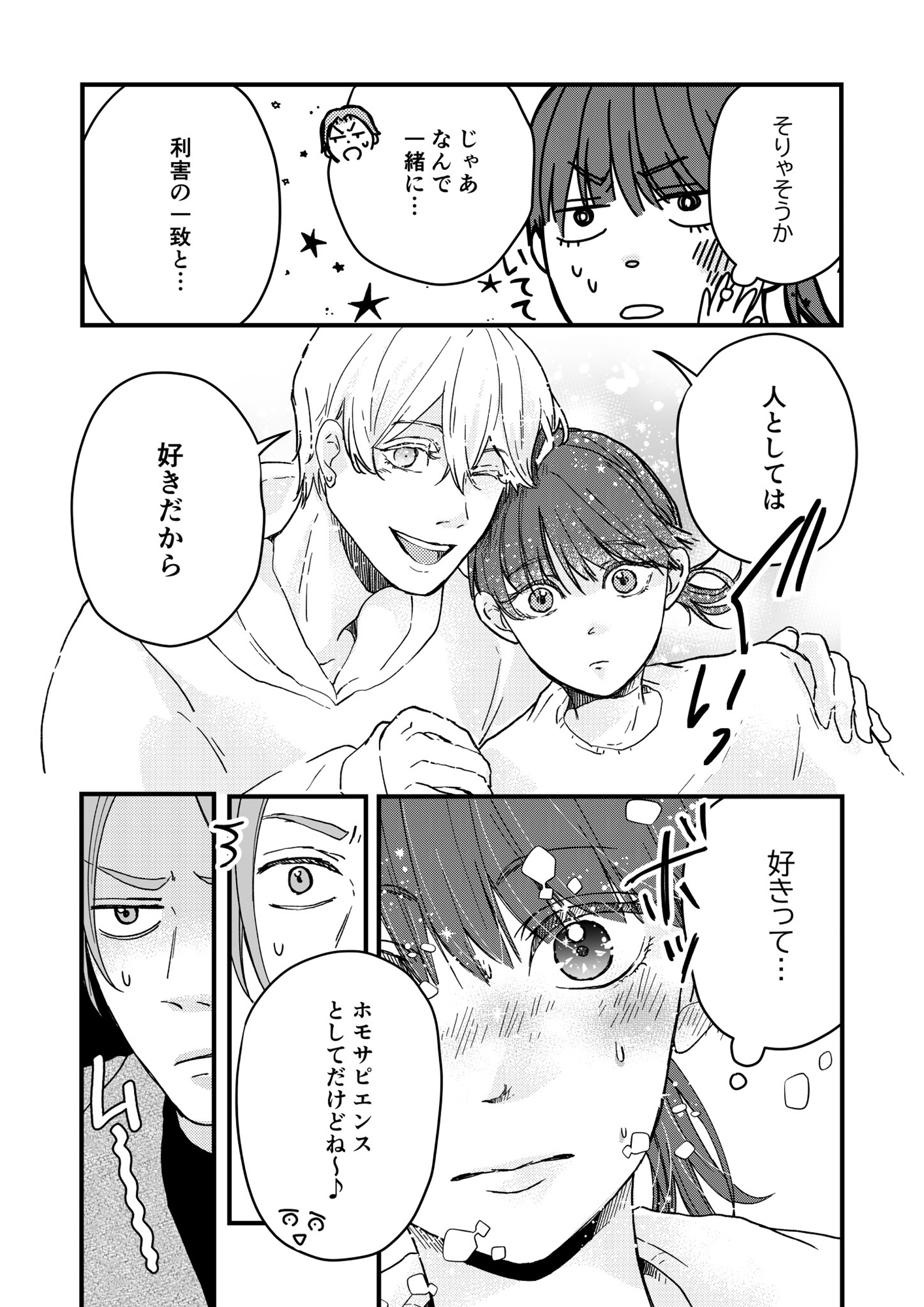 同棲する理由は「人として好きだから」。女友だちにもその彼氏にも興味はないので【結婚したい私と、彼氏じゃない人との二人暮らし。 #10】 2025.12.01 LOVE 結婚したい私と、彼氏じゃない人との二人暮らし。 試し読みマンガ試し読み 美容師のはるか(33)は、付き合って3年経つ彼氏の浩介(30)に、『結婚したい!』をはじめ、些細なことも口に出さずに言えない、モヤモヤを抱える日々を送っていた。 そんな中、彼氏と別れて引っ越し先を探す、オネエ系?なお客さんの優希(33)とひょんなことから、新生活が始まり……!? ※本記事は原作:NARATA 作画:ゆいじの電子書籍『結婚したい私と、彼氏じゃない人との二人暮らし。』から一部抜粋・編集しました。 ▶ebookjapan『結婚したい私と、彼氏じゃない人との二人暮らし。』 ▶LINEマンガ『結婚したい私と、彼氏じゃない人との二人暮らし。』 ▶30日間無料▶ Amazonの読み放題をチェック! 【99円で2カ月間】 Audible が無制限で聴ける! ▶楽天KOBO 初回購入金額のポイント最大70倍! スポンサーリンク 続きを読む 次のページへ >> 1 2 3 【注目の記事】 1番対策が難しかった…!頬のたるみやほうれい線につながるNG食事習慣最後のひとつ 冬の寒さに負けない!そろそろ準備したい中綿アウター×【ユニクロ】バズりデニムの着こなし【40代の毎日コーデ】 【ユニクロ】カシミヤタッチニットで魅せる!旬のブラウンを効かせた洗練肩掛けテク【40代の毎日コーデ】 東大生が注意喚起!「鵜呑みにしてはいけない」SNSで「でたらめの受験情報」を発信する人の特徴とは 「東大受験が簡単!?」な難関私立高出身者。天才たちの受験勉強、その驚きの実態とは この記事は OTONA SALONE1 スポンサーリンク スポンサーリンク 【人気の関連記事】 【なぜどく#7 45歳・A子さん編】地方は独身男が少ない!40代でやっと気づいたこと 【なぜ彼女は独身なのか?40代独女の本音 ♯7】アラフォー独身のイラストレーターNobbyさんが、絶賛婚活中の編集長・アサミといっしょに、婚活中の独身女性と「私たちはな… 【なぜどく#8】42歳独女が月額10万のセレブ婚活サロンに登録した結果… 【なぜ彼女は独身なの?40代独女の本音 ♯8】アラフォー独身のイラストレーターNobbyさんが、絶賛婚活中の編集長・アサミといっしょに、婚活中の独身女性と「私たちはなぜ… 【なぜどく#13 45歳・ヨーコさん編】バリキャリ女子は、婚活に迷走する? アラフォー独身のイラストレーターNobbyさんが、絶賛婚活中の編集長・アサミといっしょに、婚活中の独身女性と「私たちはなぜ婚活し続けるのか」まったり語り合う会のレポ…