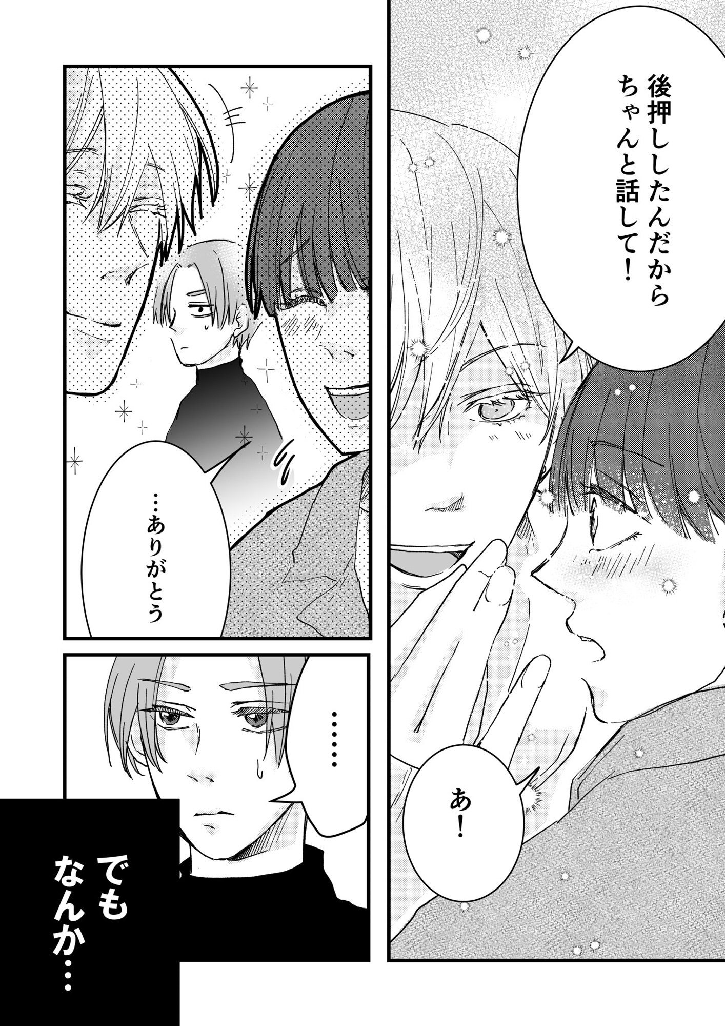 男友だちの機転で、彼氏と話し合い…「彼氏に確認したいこと」を言えるのか⁉【結婚したい私と、彼氏じゃない人との二人暮らし。 #12】 2025.12.02 LOVE マンガ試し読み結婚したい私と、彼氏じゃない人との二人暮らし。 試し読み 美容師のはるか(33)は、付き合って3年経つ彼氏の浩介(30)に、『結婚したい!』をはじめ、些細なことも口に出さずに言えない、モヤモヤを抱える日々を送っていた。 そんな中、彼氏と別れて引っ越し先を探す、オネエ系?なお客さんの優希(33)とひょんなことから、新生活が始まり……!? ※本記事は原作:NARATA 作画:ゆいじの電子書籍『結婚したい私と、彼氏じゃない人との二人暮らし。』から一部抜粋・編集しました。 ▶ebookjapan『結婚したい私と、彼氏じゃない人との二人暮らし。』 ▶LINEマンガ『結婚したい私と、彼氏じゃない人との二人暮らし。』 ▶30日間無料▶ Amazonの読み放題をチェック! 【99円で2カ月間】 Audible が無制限で聴ける! ▶楽天KOBO 初回購入金額のポイント最大70倍! スポンサーリンク 続きを読む 次のページへ >> 1 2 3 【注目の記事】 1番対策が難しかった…!頬のたるみやほうれい線につながるNG食事習慣最後のひとつ 冬の寒さに負けない!そろそろ準備したい中綿アウター×【ユニクロ】バズりデニムの着こなし【40代の毎日コーデ】 【ユニクロ】カシミヤタッチニットで魅せる!旬のブラウンを効かせた洗練肩掛けテク【40代の毎日コーデ】 東大生が注意喚起!「鵜呑みにしてはいけない」SNSで「でたらめの受験情報」を発信する人の特徴とは 「東大受験が簡単!?」な難関私立高出身者。天才たちの受験勉強、その驚きの実態とは この記事は OTONA SALONE1 スポンサーリンク スポンサーリンク 【人気の関連記事】 【なぜどく#7 45歳・A子さん編】地方は独身男が少ない!40代でやっと気づいたこと 【なぜ彼女は独身なのか?40代独女の本音 ♯7】アラフォー独身のイラストレーターNobbyさんが、絶賛婚活中の編集長・アサミといっしょに、婚活中の独身女性と「私たちはな… 【なぜどく#8】42歳独女が月額10万のセレブ婚活サロンに登録した結果… 【なぜ彼女は独身なの?40代独女の本音 ♯8】アラフォー独身のイラストレーターNobbyさんが、絶賛婚活中の編集長・アサミといっしょに、婚活中の独身女性と「私たちはなぜ… 【なぜどく#13 45歳・ヨーコさん編】バリキャリ女子は、婚活に迷走する? アラフォー独身のイラストレーターNobbyさんが、絶賛婚活中の編集長・アサミといっしょに、婚活中の独身女性と「私たちはなぜ婚活し続けるのか」まったり語り合う会のレポ…