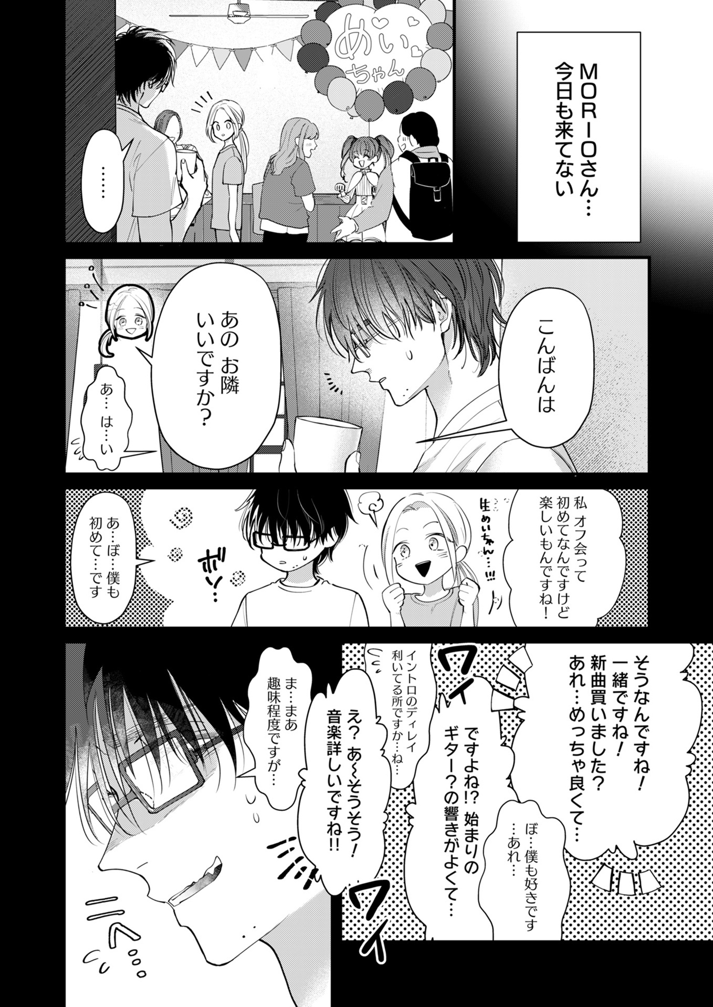 どうしたんだろう…推しのオフ会で出会ったオタ友が、最近現場に入ってない?【君の推しみたいになれないけれど #2】 2025.11.27 LOVE マンガマンガ試し読み試し読み君の推しみたいになれないけれど 試し読み 会社員として働く千秋(ちあき)は、地下アイドルめいちゃんの『推し事』をきっかけに謎のイケメン・奏人(かなと)と出会い、仲を深めていく。 地味な服装ばかりの千秋はいつもおしゃれな奏人に協力してもらい、自分に似合う「おしゃれ」を見つけることができたのだが……。 奏人の後輩やゴスロリ美女など、愉快な仲間たちに見守られながら進展していく「ヲタク×ヲタク」のじれじれ系ラブストーリー!! ※本記事はデジタル職人著の電子書籍『君の推しみたいになれないけれど』から一部抜粋・編集しました。 ▶ebookjapan『君の推しみたいになれないけれど』 ▶LINEマンガ『君の推しみたいになれないけれど』 ▶30日間無料▶ Amazonの読み放題をチェック! 【99円で2カ月間】 Audible が無制限で聴ける! ▶楽天KOBO 初回購入金額のポイント最大70倍! スポンサーリンク 続きを読む 次のページへ >> 1 2 3 【注目の記事】 1番対策が難しかった…!頬のたるみやほうれい線につながるNG食事習慣最後のひとつ 冬の寒さに負けない!そろそろ準備したい中綿アウター×【ユニクロ】バズりデニムの着こなし【40代の毎日コーデ】 【ユニクロ】カシミヤタッチニットで魅せる!旬のブラウンを効かせた洗練肩掛けテク【40代の毎日コーデ】 東大生が注意喚起!「鵜呑みにしてはいけない」SNSで「でたらめの受験情報」を発信する人の特徴とは 「東大受験が簡単!?」な難関私立高出身者。天才たちの受験勉強、その驚きの実態とは この記事は OTONA SALONE1 スポンサーリンク スポンサーリンク 【人気の関連記事】 【なぜどく#7 45歳・A子さん編】地方は独身男が少ない!40代でやっと気づいたこと 【なぜ彼女は独身なのか?40代独女の本音 ♯7】アラフォー独身のイラストレーターNobbyさんが、絶賛婚活中の編集長・アサミといっしょに、婚活中の独身女性と「私たちはな… 【なぜどく#8】42歳独女が月額10万のセレブ婚活サロンに登録した結果… 【なぜ彼女は独身なの?40代独女の本音 ♯8】アラフォー独身のイラストレーターNobbyさんが、絶賛婚活中の編集長・アサミといっしょに、婚活中の独身女性と「私たちはなぜ… 【なぜどく#13 45歳・ヨーコさん編】バリキャリ女子は、婚活に迷走する? アラフォー独身のイラストレーターNobbyさんが、絶賛婚活中の編集長・アサミといっしょに、婚活中の独身女性と「私たちはなぜ婚活し続けるのか」まったり語り合う会のレポ…