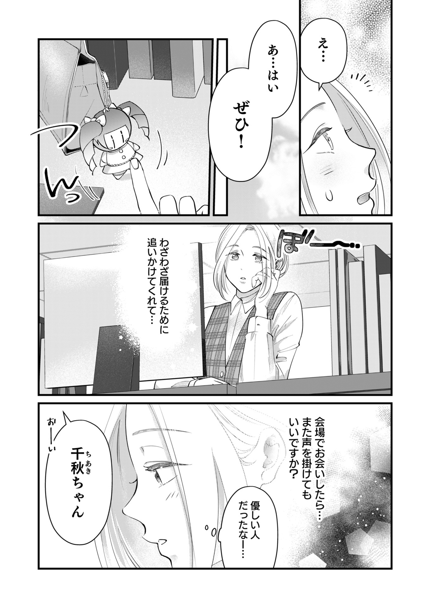 推しのライブの動員数が増えてる…オタクにとって「後方参戦」がうれしい理由とは【君の推しみたいになれないけれど #4】 2025.11.28 LOVE 君の推しみたいになれないけれど 試し読み試し読みマンガ試し読みマンガ 会社員として働く千秋(ちあき)は、地下アイドルめいちゃんの『推し事』をきっかけに謎のイケメン・奏人(かなと)と出会い、仲を深めていく。 地味な服装ばかりの千秋はいつもおしゃれな奏人に協力してもらい、自分に似合う「おしゃれ」を見つけることができたのだが……。 奏人の後輩やゴスロリ美女など、愉快な仲間たちに見守られながら進展していく「ヲタク×ヲタク」のじれじれ系ラブストーリー!! ※本記事はデジタル職人著の電子書籍『君の推しみたいになれないけれど』から一部抜粋・編集しました。 ▶ebookjapan『君の推しみたいになれないけれど』 ▶LINEマンガ『君の推しみたいになれないけれど』 ▶30日間無料▶ Amazonの読み放題をチェック! 【99円で2カ月間】 Audible が無制限で聴ける! ▶楽天KOBO 初回購入金額のポイント最大70倍! スポンサーリンク 続きを読む 次のページへ >> 1 2 3 【注目の記事】 1番対策が難しかった…!頬のたるみやほうれい線につながるNG食事習慣最後のひとつ 冬の寒さに負けない!そろそろ準備したい中綿アウター×【ユニクロ】バズりデニムの着こなし【40代の毎日コーデ】 【ユニクロ】カシミヤタッチニットで魅せる!旬のブラウンを効かせた洗練肩掛けテク【40代の毎日コーデ】 東大生が注意喚起!「鵜呑みにしてはいけない」SNSで「でたらめの受験情報」を発信する人の特徴とは 「東大受験が簡単!?」な難関私立高出身者。天才たちの受験勉強、その驚きの実態とは この記事は OTONA SALONE1 スポンサーリンク スポンサーリンク 【人気の関連記事】 【なぜどく#7 45歳・A子さん編】地方は独身男が少ない!40代でやっと気づいたこと 【なぜ彼女は独身なのか?40代独女の本音 ♯7】アラフォー独身のイラストレーターNobbyさんが、絶賛婚活中の編集長・アサミといっしょに、婚活中の独身女性と「私たちはな… 【なぜどく#8】42歳独女が月額10万のセレブ婚活サロンに登録した結果… 【なぜ彼女は独身なの?40代独女の本音 ♯8】アラフォー独身のイラストレーターNobbyさんが、絶賛婚活中の編集長・アサミといっしょに、婚活中の独身女性と「私たちはなぜ… 【なぜどく#13 45歳・ヨーコさん編】バリキャリ女子は、婚活に迷走する? アラフォー独身のイラストレーターNobbyさんが、絶賛婚活中の編集長・アサミといっしょに、婚活中の独身女性と「私たちはなぜ婚活し続けるのか」まったり語り合う会のレポ…
