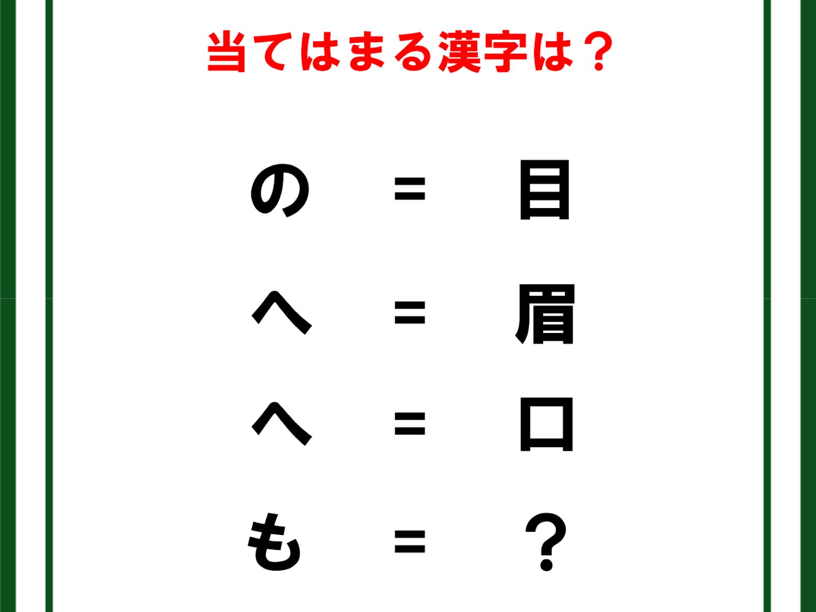 クイズです!「の=目、へ=眉。では、もは?」見たことがあるはず!【難易度LV3.・中辛】