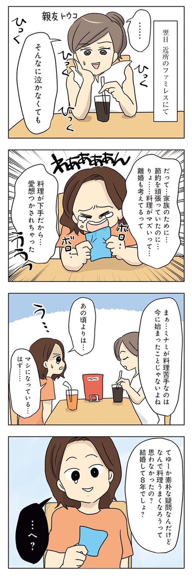 料理が下手なだけで離婚? 夫の横暴な態度を親友に愚痴ると、思いもよらない言葉が返ってくる【妻の飯がマズくて離婚したい #5】
