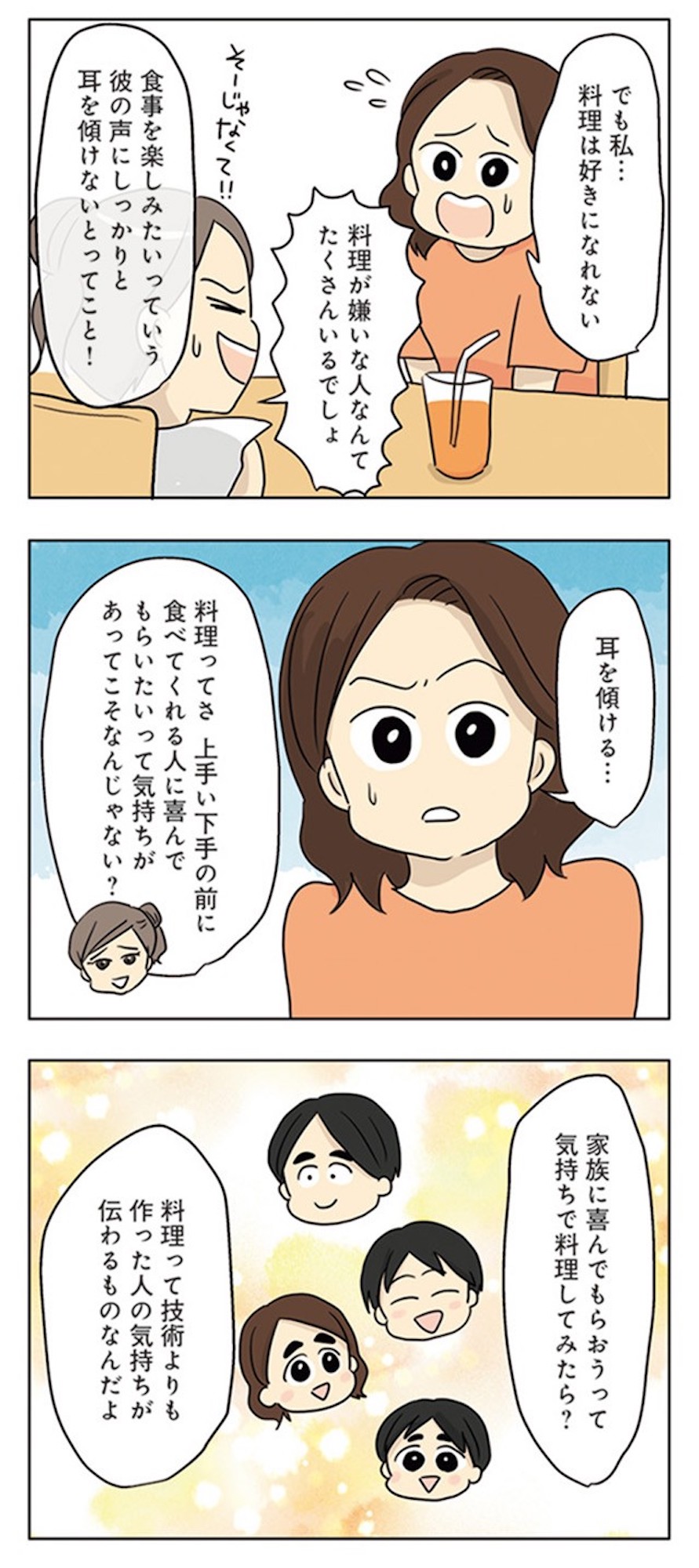 上手い下手の前に料理に大切なことは? 家族のため、親友のアドバイス通り行動すると?【妻の飯がマズくて離婚したい #6】