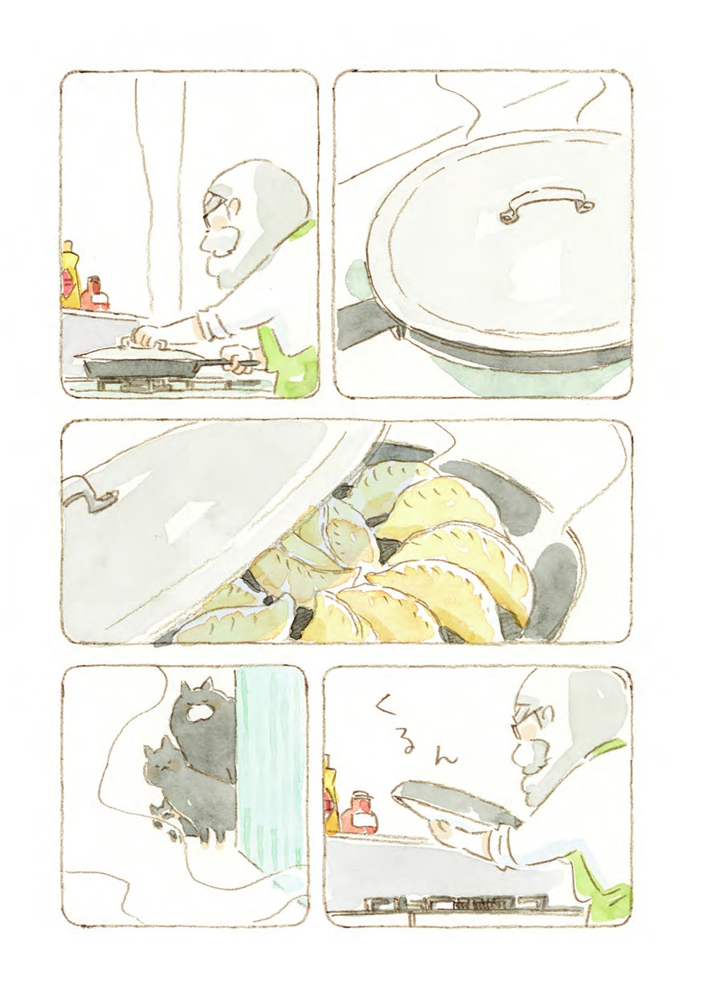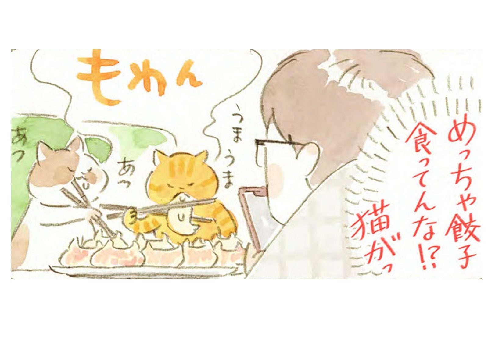 猫が見守る中で食べるニンニク3倍マシマシ餃子。真夜中に味わっているのは…!?【深夜3時のくろねこ喫茶 #6】