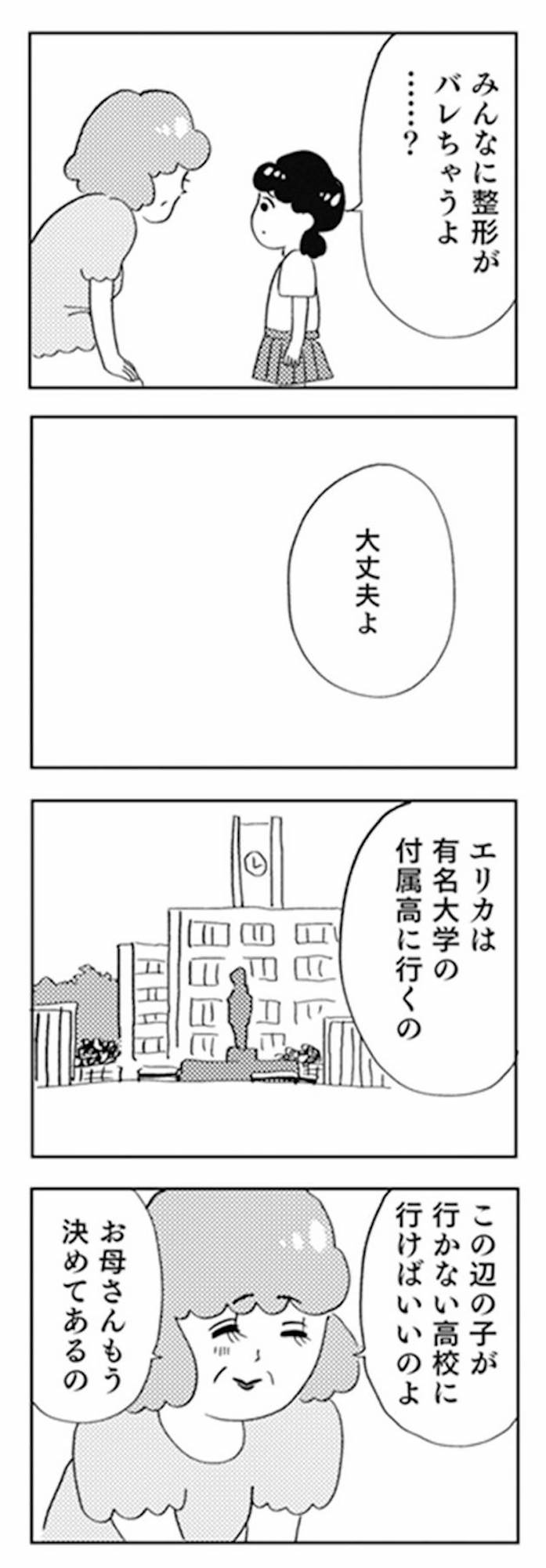 「女の子は可愛くないと」母に容姿をはじめて否定された小学校低学年【親に整形させられた私が母になる #3】 2025.12.13 LIFE 試し読みマンガ親子関係親に整形させられた私が母になる エリカの場合 試し読みマンガ試し読み ▶Renta!『親に整形させられた私が母になる エリカの場合』 ▶30日間無料▶ Amazonの読み放題をチェック! 【99円で2カ月間】 Audible が無制限で聴ける! ▶楽天KOBO 初回購入金額のポイント最大70倍! スポンサーリンク 次のページへ >> 1 2 3 【注目の記事】 「その顔がむかつくんだよ!」仁王立ちで怒鳴り、時には首に包丁まで… 妻の激情に怯える夫と子ども。「それでも別れられなかった」理由とは お仕事世代の30~50代がもれなく悩む「睡眠」。つけるだけで丁寧に伴走してくれるガーミンのフィットネスGPSウォッチ「Venu 4」の「超絶実力」 気をつけて!「最近なんだか、疲れやすい」オトナ世代の女性が見落としがちな「病気」とは つい毎日やりがち。肌年齢マイナス14歳美容のプロがやめてよかった、睡眠の質を落とす夜の習慣2つ 48歳、高コスパコートをマネキン買いしたばかりのPTA中受ママが「羽織るだけでコーデ偏差値が爆上がりする」アイテムに出会ってしまい この記事は OTONA SALONE4 スポンサーリンク スポンサーリンク 【人気の関連記事】 40代。もう私、いつ死んだっていい気がするけど | あした死ぬには、#1 突然の病気。更年期障害。取れない疲労、お金の不安、これからの人生の迷い……。40代がぶち当たる「壁」をあまりにもリアルに描き出し、熱く静かな共感をさらった雁須磨子さ… 人前では「完璧な夫婦」を演じる夫。普段は私を無視してるって、誰も知らない【女40代はおそろしい#11】 40歳・フリーデザイナーの丸山ふさ子。 夫との攻防戦の末、「共働きだけど夫のほうが家事育児多め」という関係にやっとたどり着く。バリキャリ会社員のまい、起業家のかお… 年齢、たまに忘れてない?アラフォーあるあるが「共感しかない」と話題 「最近、若い頃と比べて何かが違う……」そんなモヤモヤを抱えているアラフォーのみなさん、必見!イラストレーターのRingoman(@ringo_fashion)さんがインスタグラムに投稿…