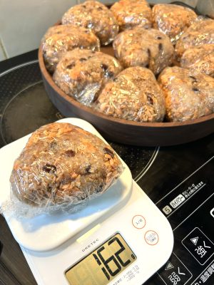 雑穀と大麦を混ぜた玄米をおにぎりにしてストックしていたTさん。