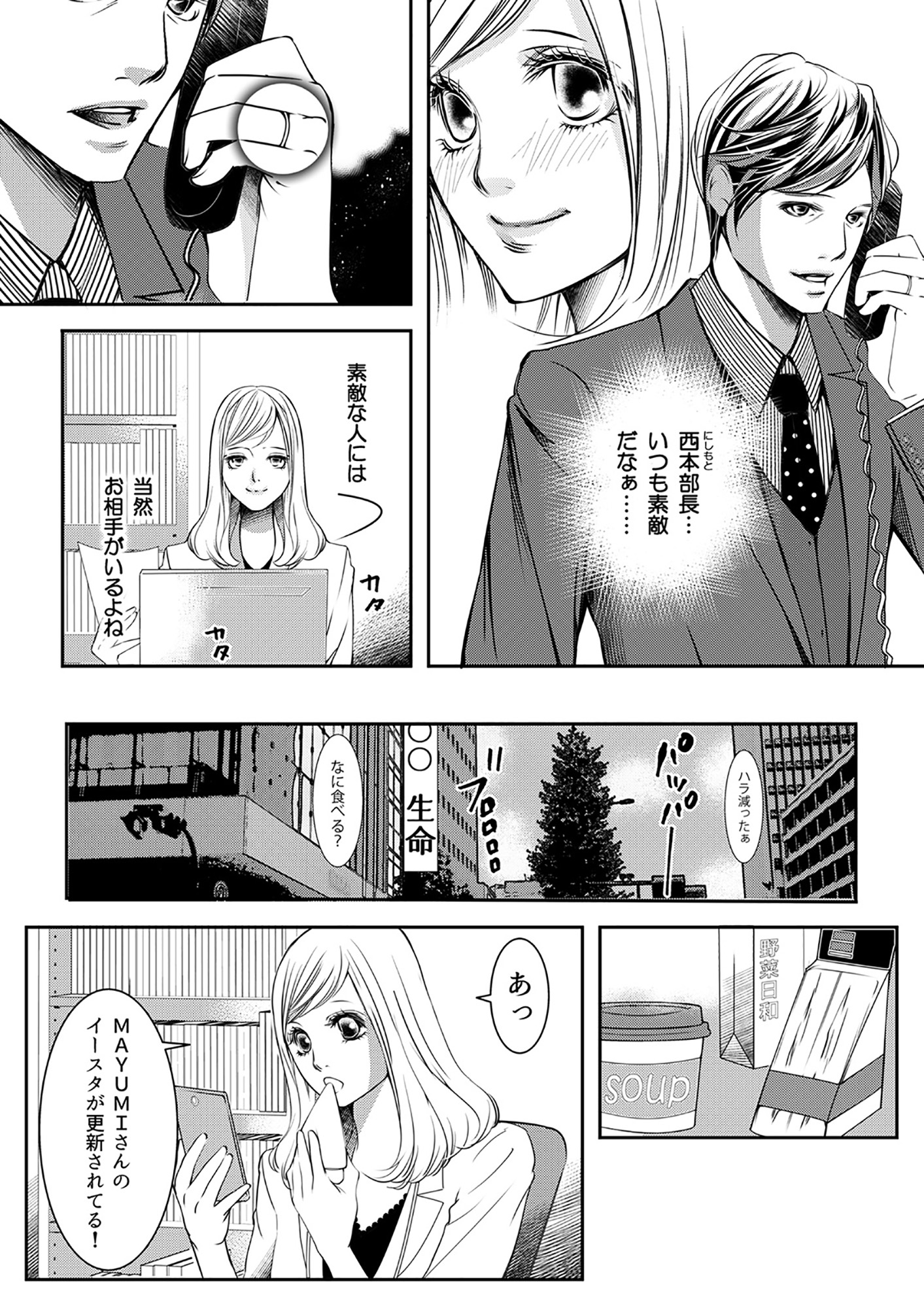 仕事は完璧だが不器用で何事にも一生懸命な26歳のOL、杉田早紀。憧れの上司・西本への想いを断ち切ろうとした矢先「離婚した」と告げられ二人は交際をスタートする。長年の想いが実り、結婚を意識した幸せの絶頂を迎える。しかし、偶然、西本の妻のSNSを見つけてしまったことで状況は一変。離婚の裏に隠された西本の“本性”と衝撃の真実が明らかになり、早紀の幸せな日常は崩れてしまう。彼女がたどり着く運命とは」?