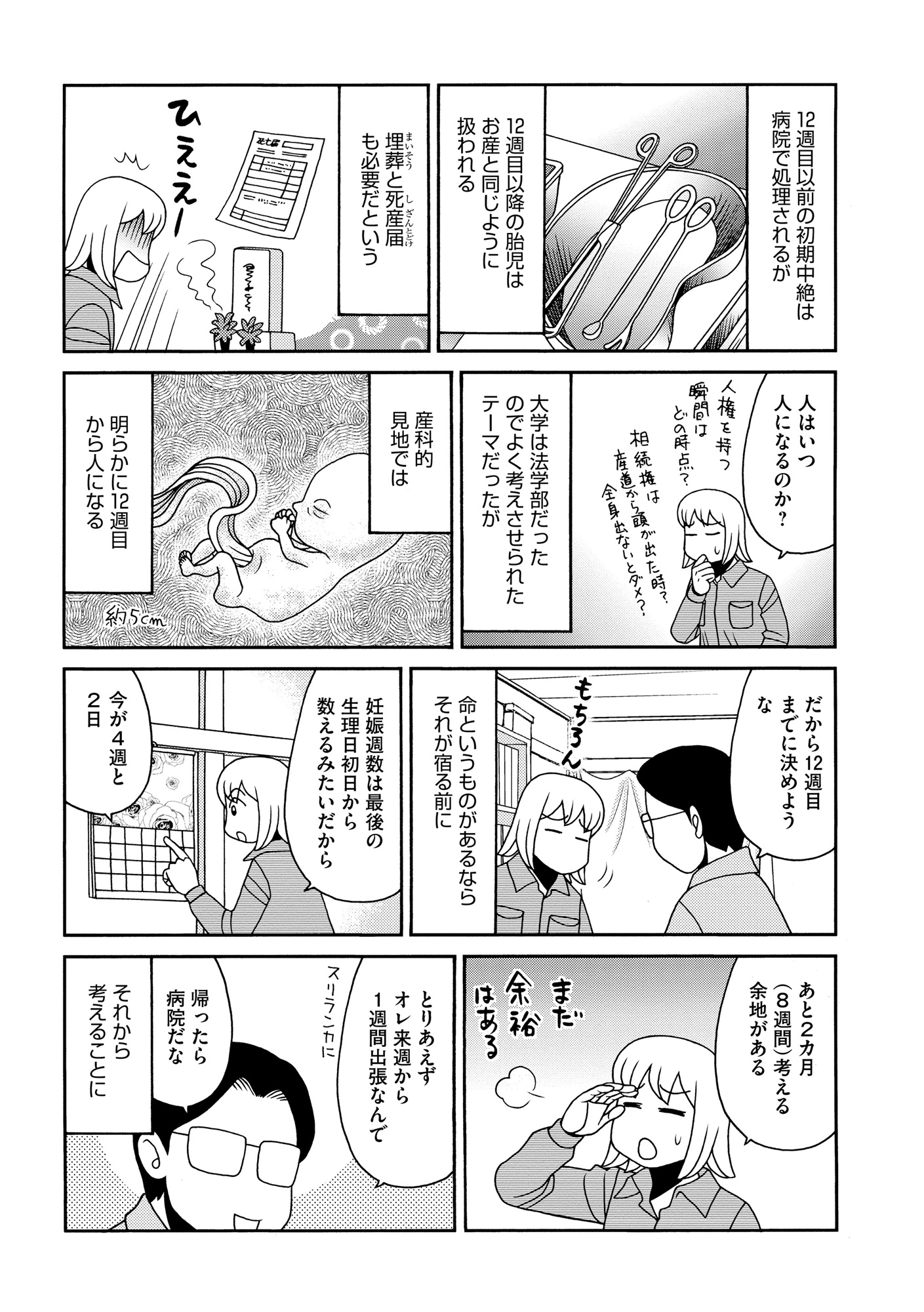 8週間で産むか決める…悩みに悩んでいた46歳、突然の出血【アラフィフ漫画家 更年期かと思ったら妊娠してました #8】 2025.12.01 LIFE 試し読みマンガ更年期かと思ったら 試し読みマンガ試し読み その日、漫画家・東條さち子も「生理」が来ていないことに気がついた。 「更年期」が来た。そう思いながらも旦那に言われて冗談交じりに妊娠検査薬を試したところ、なんと結果は陽性! 病院で検査すると妊娠に加えて大きな卵巣嚢腫まであることが発覚!! 高齢出産は可能なのか? 嚢腫を取るために手術が必要!? 人気女性漫画家が、50代を前に直面した「更年期」との闘いを描くエッセイ!! ※本記事は東條さち子著の書籍『アラフィフ漫画家 更年期かと思ったら妊娠してました』から一部抜粋・編集しました。 ▶Renta!『アラフィフ漫画家 更年期かと思ったら妊娠してました』 ▶30日間無料▶ Amazonの読み放題をチェック! 【99円で2カ月間】 Audible が無制限で聴ける! ▶楽天KOBO 初回購入金額のポイント最大70倍! スポンサーリンク 続きを読む 次のページへ >> 1 2 3 【注目の記事】 1番対策が難しかった…!頬のたるみやほうれい線につながるNG食事習慣最後のひとつ 冬の寒さに負けない!そろそろ準備したい中綿アウター×【ユニクロ】バズりデニムの着こなし【40代の毎日コーデ】 【ユニクロ】カシミヤタッチニットで魅せる!旬のブラウンを効かせた洗練肩掛けテク【40代の毎日コーデ】 東大生が注意喚起!「鵜呑みにしてはいけない」SNSで「でたらめの受験情報」を発信する人の特徴とは 「東大受験が簡単!?」な難関私立高出身者。天才たちの受験勉強、その驚きの実態とは この記事は OTONA SALONE1 スポンサーリンク スポンサーリンク 【人気の関連記事】 40代。もう私、いつ死んだっていい気がするけど | あした死ぬには、#1 突然の病気。更年期障害。取れない疲労、お金の不安、これからの人生の迷い……。40代がぶち当たる「壁」をあまりにもリアルに描き出し、熱く静かな共感をさらった雁須磨子さ… 人前では「完璧な夫婦」を演じる夫。普段は私を無視してるって、誰も知らない【女40代はおそろしい#11】 40歳・フリーデザイナーの丸山ふさ子。 夫との攻防戦の末、「共働きだけど夫のほうが家事育児多め」という関係にやっとたどり着く。バリキャリ会社員のまい、起業家のかお… 年齢、たまに忘れてない?アラフォーあるあるが「共感しかない」と話題 「最近、若い頃と比べて何かが違う……」そんなモヤモヤを抱えているアラフォーのみなさん、必見!イラストレーターのRingoman(@ringo_fashion)さんがインスタグラムに投稿…