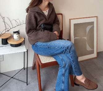 インフルエンサーのerica.life7さんは、やわらかくて着心地の良さが伝わるGUのハーフジッププルオーバーのブラウンに、フレアデニムを合わせきれいめに着こなしています。コンパクトな丈感のお陰で脚長効果も。インナーに白を重ねることで、ぬけ感がアップ。ボリュームのあるトップスをバランスよく見せるテクニックが光っています。