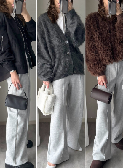 リラクシーと上品見えを兼ねる【ユニクロC新作】 センターライン入りスウェットパンツ。とにかく落ち感がキレイです【40代の毎日コーデ】