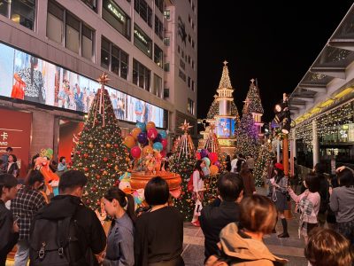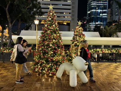 もうひとつ、やっぱり香港のノエルは「温暖!」という点にしみじみします。日本でイルミネーションを見るのって、ダウンを着こんで凍えながらというイメージしかないので、特にコロナ後は通りがかるなら通るけれどもわざわざ目的地として行きたい気持ちにはなりにくかったのですが、薄手のコート1枚でじゅうぶんな気温ですから足を伸ばしてどんどん歩けます。
