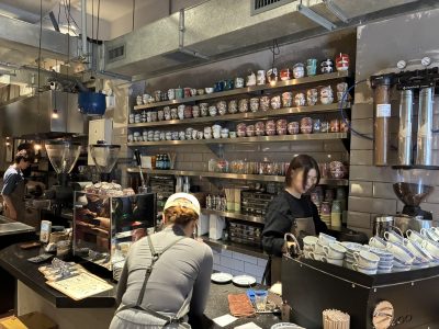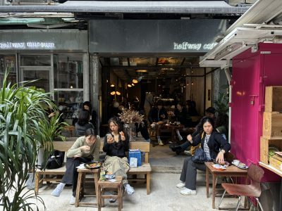 人気の骨董街、キャットストリートの一角に。ヴィンテージカップが並ぶコーヒー「halfway coffee」