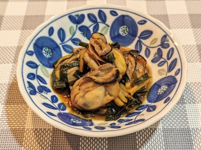 これらの“肝・腎の機能にうれしい食材”を使ったおススメレシピの1つ目は「牡蠣とニラのなたまめしぐれ煮」です。寒くなると旬を迎える牡蠣。同じく寒くなるとスーパーでも出回り始める冬ニラと合せてレシピにしてみました。