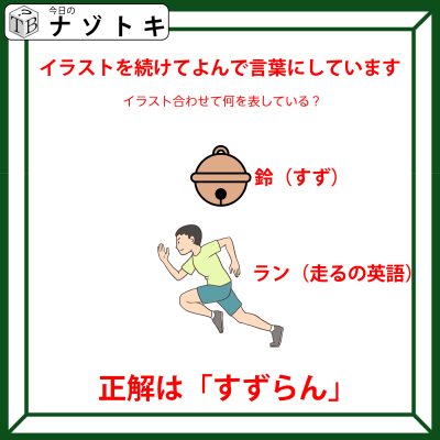 これは上から「スズ(鈴)」、そして「ラン(走るの英語)」です。