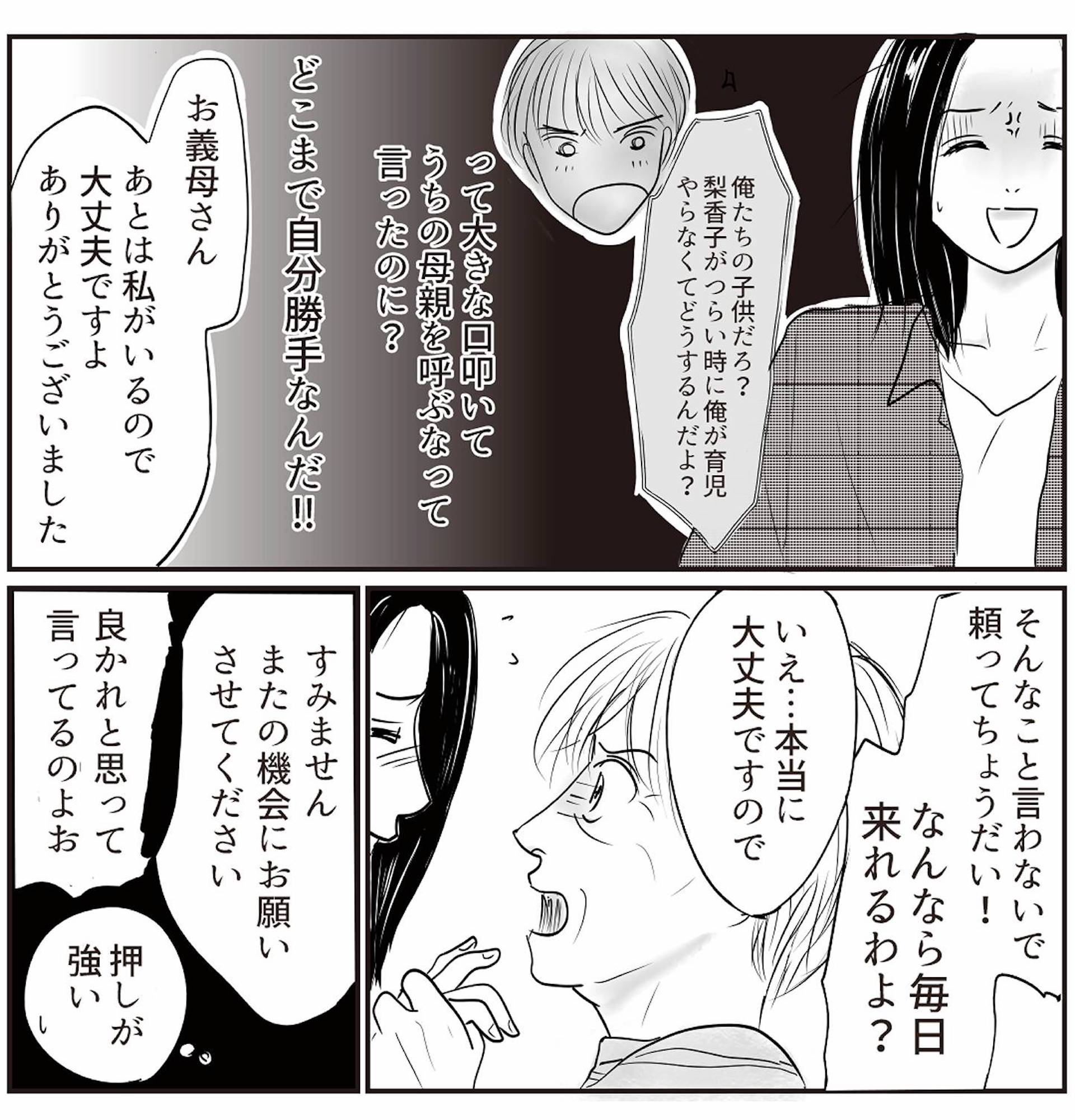 家に帰るとなぜか義母がいた。子どもの面倒を見ると大口を叩いていた夫は一体どこに?【とるだけ育休の夫はいらない #6】