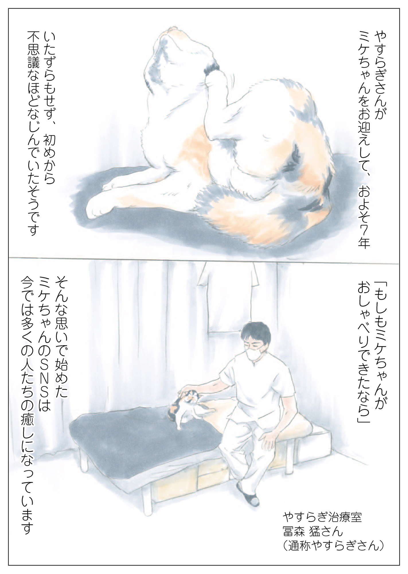 「もしもミケちゃんがおしゃべりできたなら…」優しい気持ちになれる、猫と飼い主の心温まる物語【ミケちゃんとやすらぎさん #1】