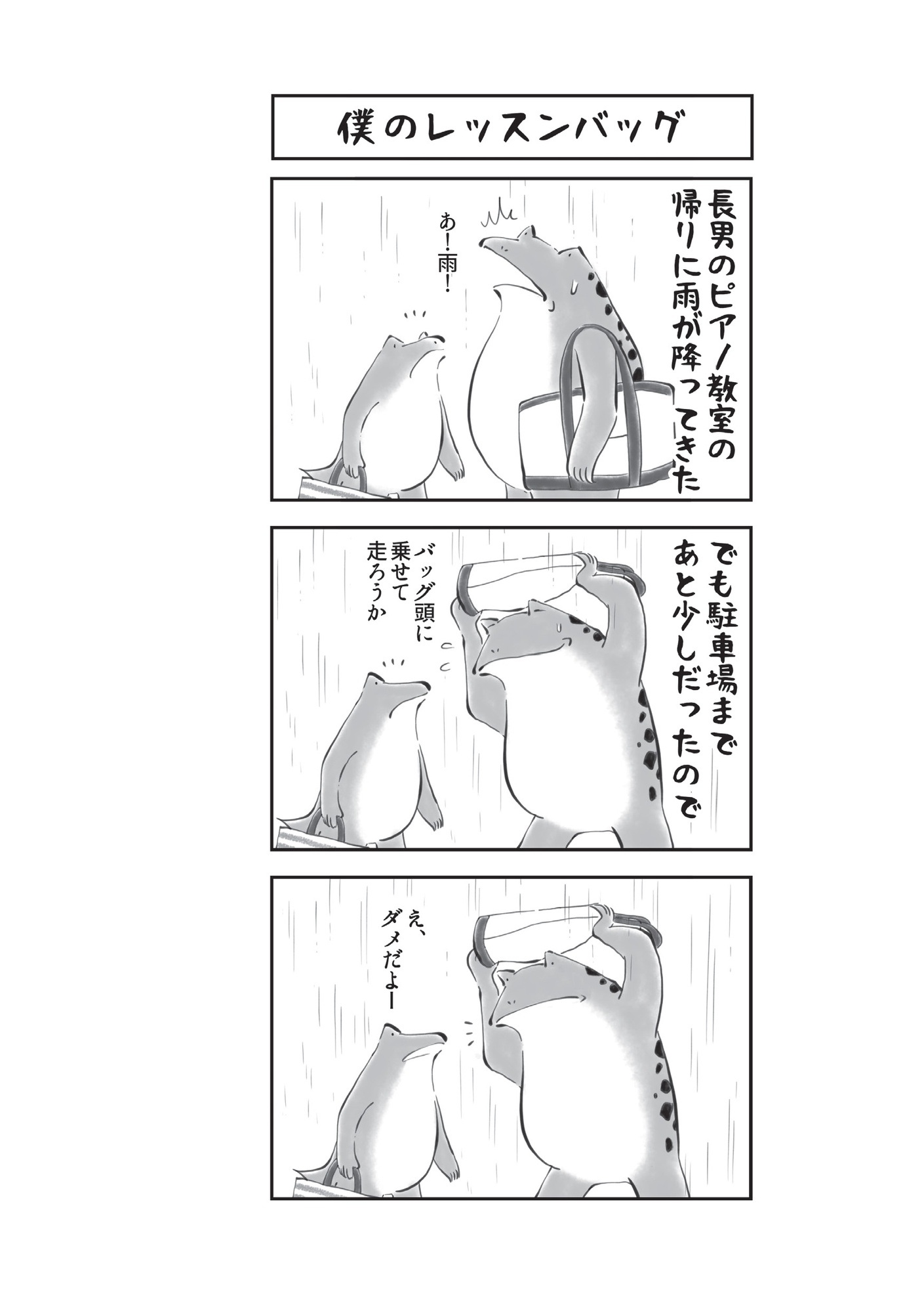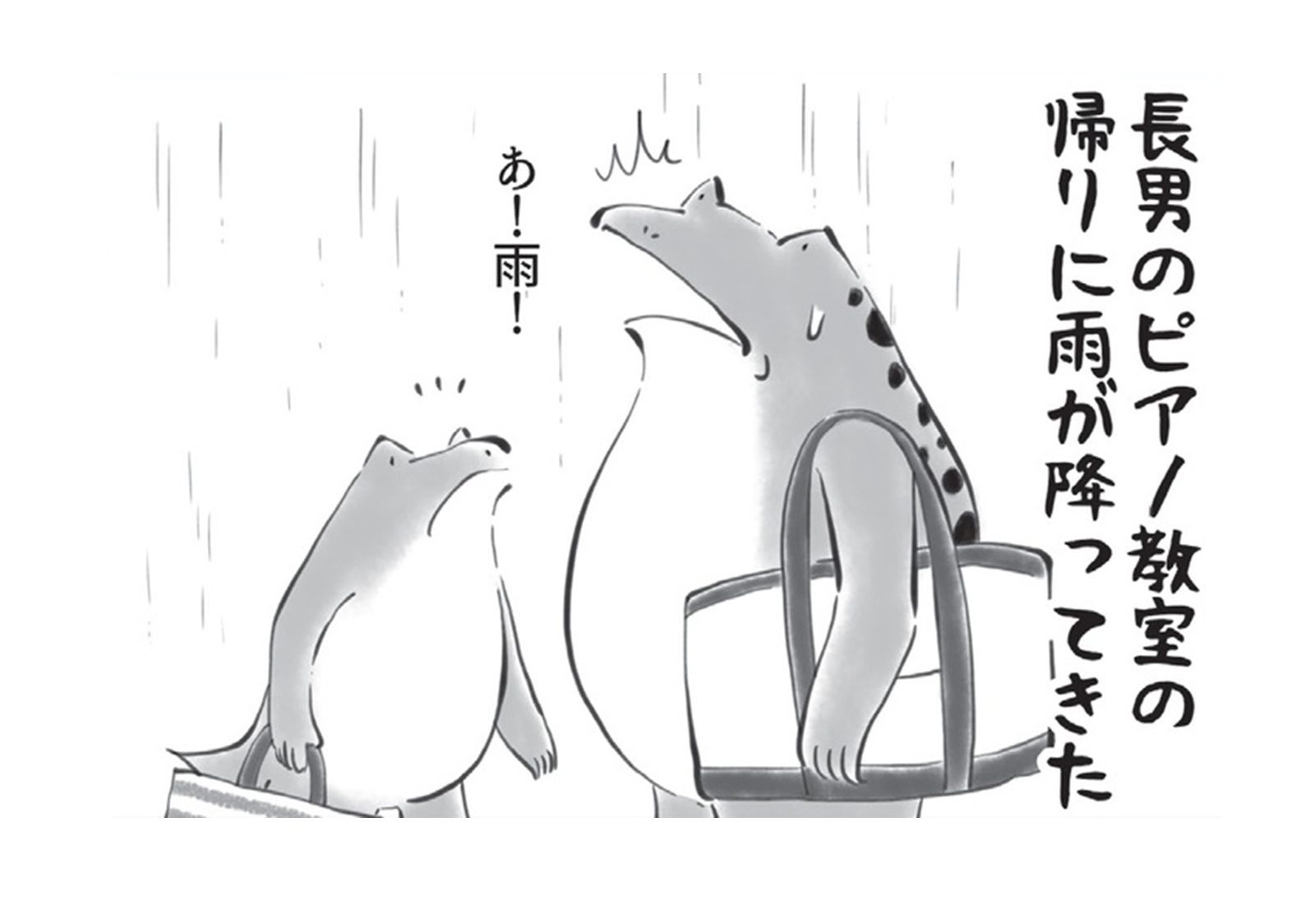 ピアノ教室の後に突然の雨! レッスンバッグを傘替わりにしようとしたら… 【カエル母さん #5】