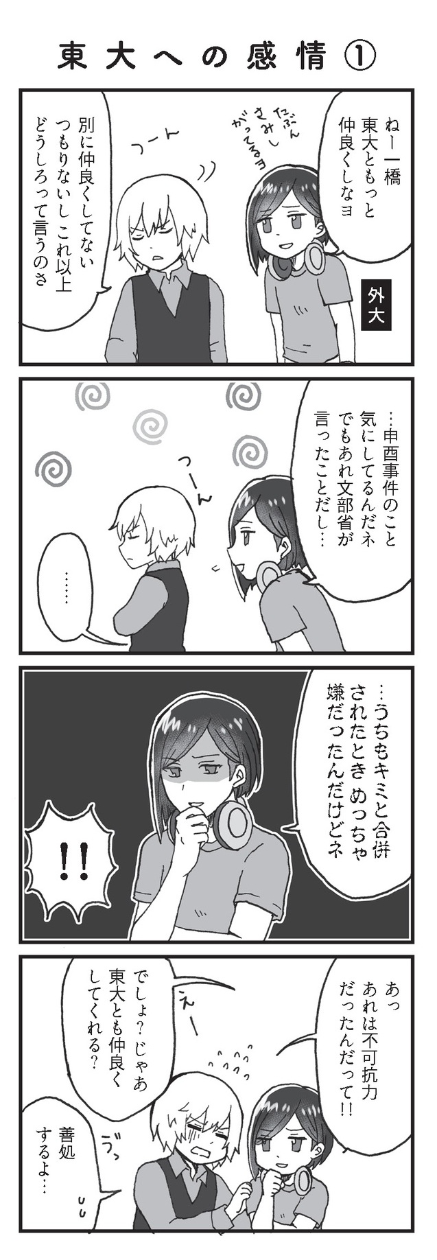 【四大学連合】合併の話が出たり、以前していたり… 複雑な感情は「東大」にも向いている!?【擬人化マンガ 大学あるあるこれくしょん #2】