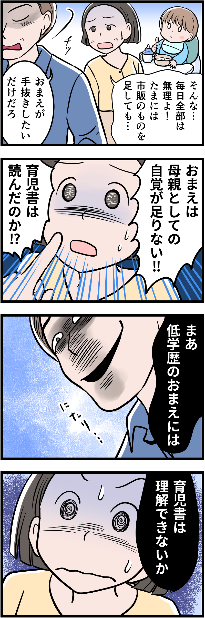 「離乳食ってのはな…!」炸裂する夫の”育児論”。言い返しても、「あの言葉」で黙らせられて…【モラハラ実話マンガ】#113