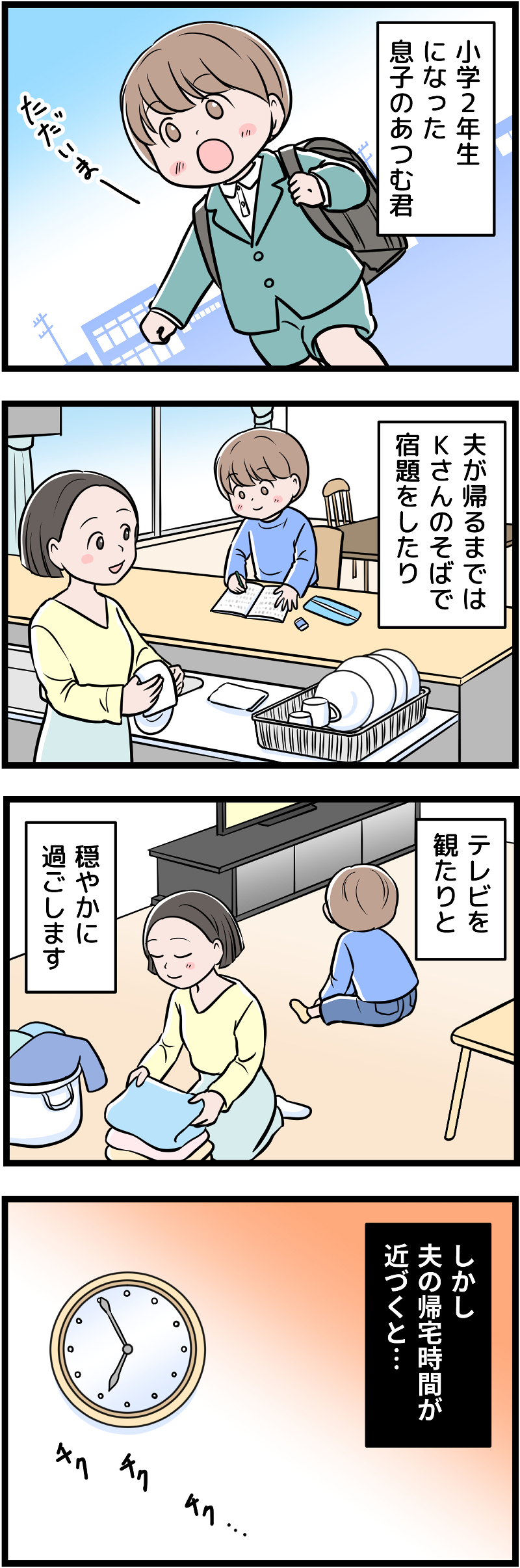 小学生になった息子に現れた、ある「兆候」。モラハラ男が父親であるという運命【モラハラ実話マンガ】#114 2025.12.12 LIFE モラハラ女性の生き方離婚うちの夫はモラハラでしたマンガ体験記 【うちの夫はモラハラでした】#114 子どもに現れた「変化」 次ページ 次のページへ >> 1 2 スポンサーリンク 【注目の記事】 お仕事世代の30~50代がもれなく悩む「睡眠」。つけるだけで丁寧に伴走してくれるガーミンのフィットネスGPSウォッチ「Venu 4」の「超絶実力」 気をつけて!「最近なんだか、疲れやすい」オトナ世代の女性が見落としがちな「病気」とは つい毎日やりがち。肌年齢マイナス14歳美容のプロがやめてよかった、睡眠の質を落とす夜の習慣2つ 48歳、高コスパコートをマネキン買いしたばかりのPTA中受ママが「羽織るだけでコーデ偏差値が爆上がりする」アイテムに出会ってしまい 今シーズン着こなしたい【ユニクロ】の優秀スウェットパンツ。大人かっこいい着こなしのお手本スタイル【40代の毎日コーデ】 この記事は マンガ家・イラストレーター 凪 スポンサーリンク スポンサーリンク 【人気の関連記事】 【おひとりさま】 なぜか40代独身がすすめられる、幸せのための15のこと 【あるある】 世間というものは40代未婚のおひとりさまの行く末を心配してくださるのか、いろいろなものをすすめられます。独女の幸せを考えて、親族から、友人から、知人から、先輩から… 40代。もう私、いつ死んだっていい気がするけど | あした死ぬには、#1 突然の病気。更年期障害。取れない疲労、お金の不安、これからの人生の迷い……。40代がぶち当たる「壁」をあまりにもリアルに描き出し、熱く静かな共感をさらった雁須磨子さ… 【独女】おひとりさまを楽しむ! 40代・独身・未婚の女性有名人【元アイドル・芸人まとめ】 40代で独身、結婚歴のない元アイドルの女性、女芸人をピックアップ! みなさん40代とは思えない美貌をキープしていたり、独女ライフを楽しく送っていそうな女性たちばかり… 【凪の記事一覧】 「離乳食ってのはな…!」炸裂する夫の”育児論”。言い返しても、「あの言葉」で黙らせられて…【モラハラ実話マンガ】#113 「母乳が出ないのは甘えだ!母親失格!」新生児を抱えて身動きできない私、夫に罵られて…【モラハラ実話マンガ】#112 「8キロまでしか増やすな!」妊娠した私に向かって体重の指導をする夫って、変ですか? さらに、要求はエスカレートして…【モラハラ実話マンガ】#111 >>もっと見る