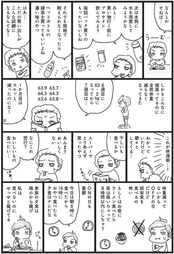 ダイエットの鬼門、「停滞期」に突入!体重が減らなくてむなしい…そんな時はどうする!?【アラフィフ母さんが7kg痩せた!奇跡の仕組みダイエット #32】 2025.12.12 WELLNESS マンガ試し読みマンガ試し読みアラフィフ母さんが3か月で7㎏痩せた! 試し読みダイエット ▶Renta『アラフィフ母さんが3か月で7㎏痩せた!』 ▶30日間無料▶ Amazonの読み放題をチェック! ▶【99円で2カ月間】 Audible が無制限で聴ける! ▶楽天KOBO 初回購入金額のポイント最大70倍! スポンサーリンク 次のページへ >> 1 2 3 【注目の記事】 「その顔がむかつくんだよ!」仁王立ちで怒鳴り、時には首に包丁まで… 妻の激情に怯える夫と子ども。「それでも別れられなかった」理由とは お仕事世代の30~50代がもれなく悩む「睡眠」。つけるだけで丁寧に伴走してくれるガーミンのフィットネスGPSウォッチ「Venu 4」の「超絶実力」 気をつけて!「最近なんだか、疲れやすい」オトナ世代の女性が見落としがちな「病気」とは つい毎日やりがち。肌年齢マイナス14歳美容のプロがやめてよかった、睡眠の質を落とす夜の習慣2つ 48歳、高コスパコートをマネキン買いしたばかりのPTA中受ママが「羽織るだけでコーデ偏差値が爆上がりする」アイテムに出会ってしまい この記事は OTONA SALONE1 スポンサーリンク スポンサーリンク 【人気の関連記事】 ツライときは食事を変えよう #2 毎日イライラ、物忘れもすごい。ダメママすぎて涙がでそう がんばって家事も育児もしないとならないのに、どうしてだろう、毎日だるくて起き上がれない…こんなことじゃダメだ、私…2人の子どもを育てながら家事をがんばる30代の愛ち… ツライときは食事を変えよう #4 朝起きられないのは○○不足のせいだった…!? がんばって家事も育児もしないとならないのに、どうしてだろう、毎日だるくて起き上がれない…こんなことじゃダメだ、私…2人の子どもを育てながら家事をがんばる30代の愛ち… ツライときは食事を変えよう #6 起き上がれないレベルのだるさ。でも、○○を変えることで…? 30代の愛ちゃんは、いつもクタクタ。健康的な食生活を送っているはずなのに、なぜ……?愛ちゃんファミリーを中心にした、困った問題を、『栄養の不足』を補うことで、解決、…