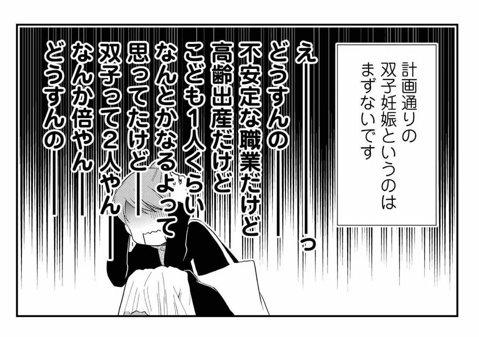 「胎嚢が2つ⁉」高齢出産で不安定な職業…慎重派の夫がまさかのマタニティブルーに!【なんもわからん双子育児 #4】