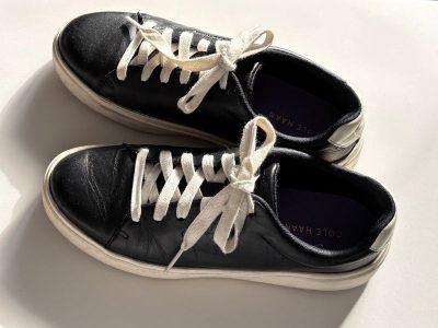 今年購入したコールハーンのレザースニーカーは、きちんとした印象のブラック。型落ちのものをオンラインで2万円ほどで購入しました。どこに行くのにも履いていくことができ、クッション性があるので、履き心地抜群です。長時間歩いても疲れにくいので、一般的なスニーカーよりお高めでしたが、購入してよかったと感じています。