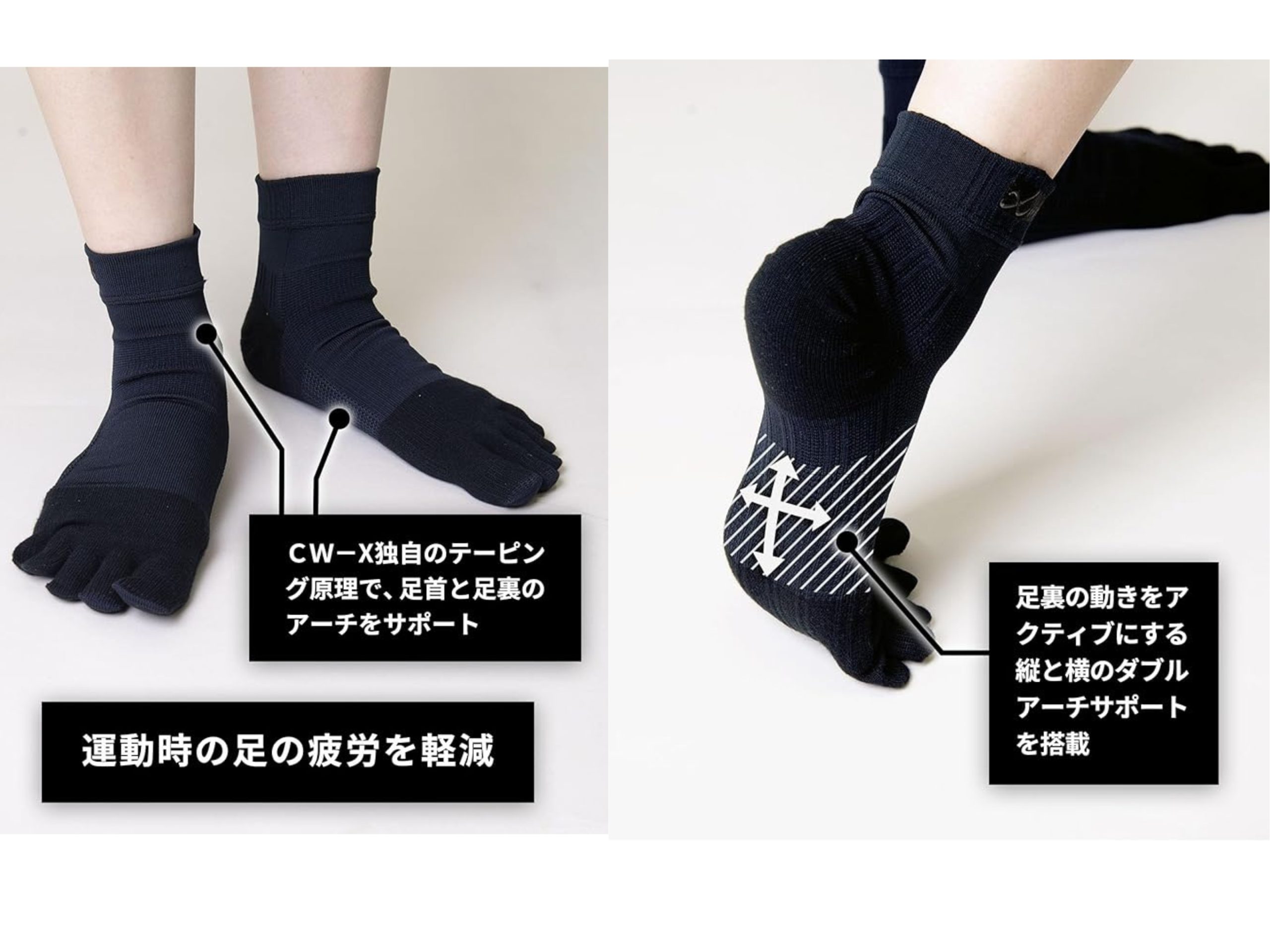 大谷翔平選手も愛用! 独自のテーピング原理をいかした5本指ソックス。足裏の動きをアクティブにし、疲労を軽減