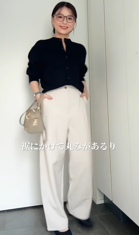 - 細リブニットで作る大人の甘辛モノトーンと体型カバー法【40代の毎日コーデ】