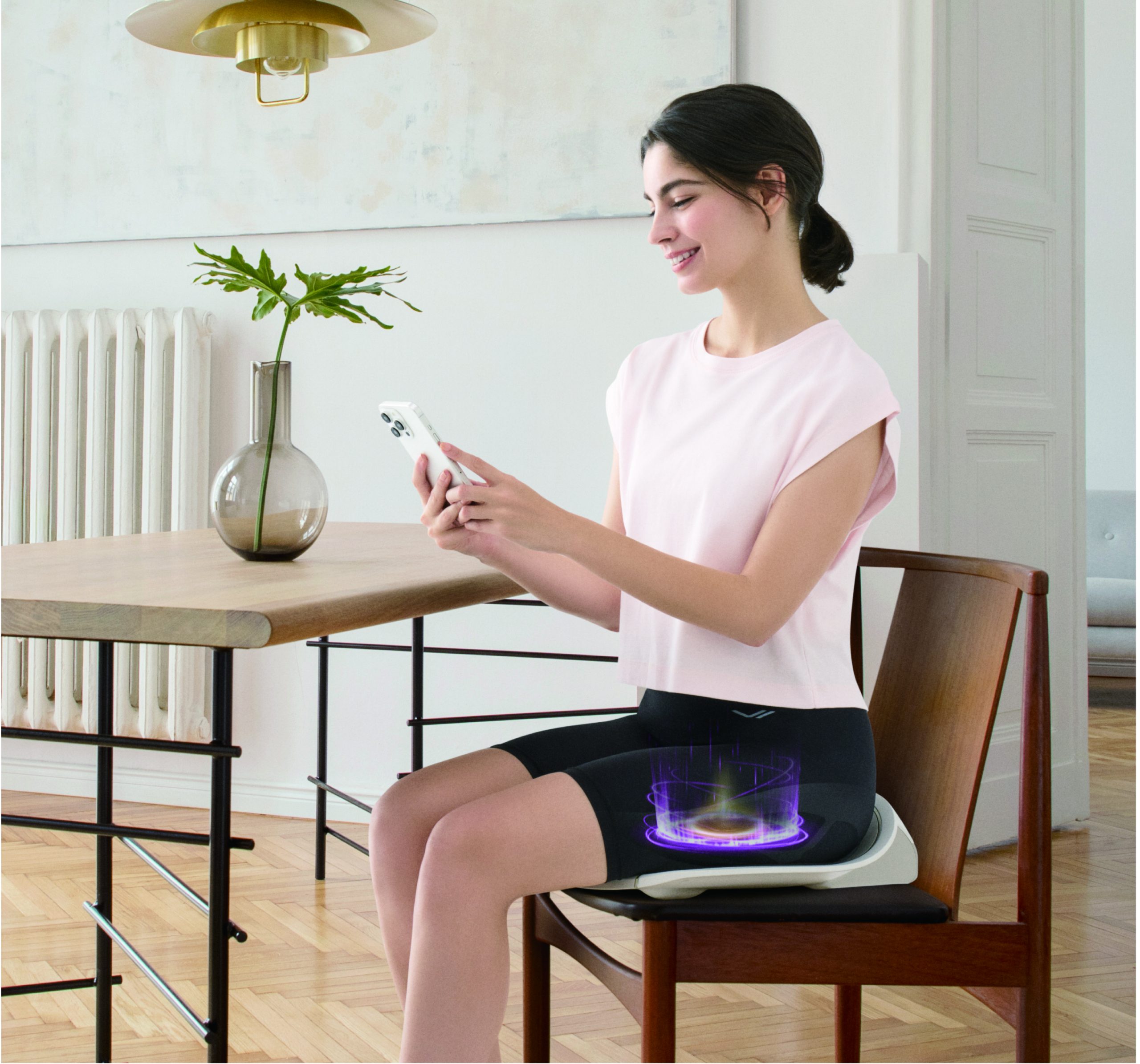 これは椅子の上に置き、その上に座って使うEMS機器。1日15分座ることで骨盤底筋を効率的に鍛えてくれるんです。