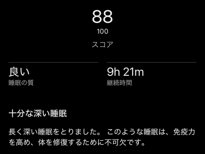 ずっと浅い眠りと覚醒を繰り返しています。うとうとして、はっと気づいて起きる繰り返し。しかし、主観では「あまりに鼻水と咳がすごくてほぼ寝ていない」と思っていたのに、質の悪い睡眠とはいえ案外寝ています。子どものころ親によく「眠れなくても目をつぶって横になっておきなさい」と言われたと思うのですが、この意味で正解だと約50年ぶりに確認できました。眠れていないつもりで結構寝ているということなのです、やっぱり定量化は大事です。