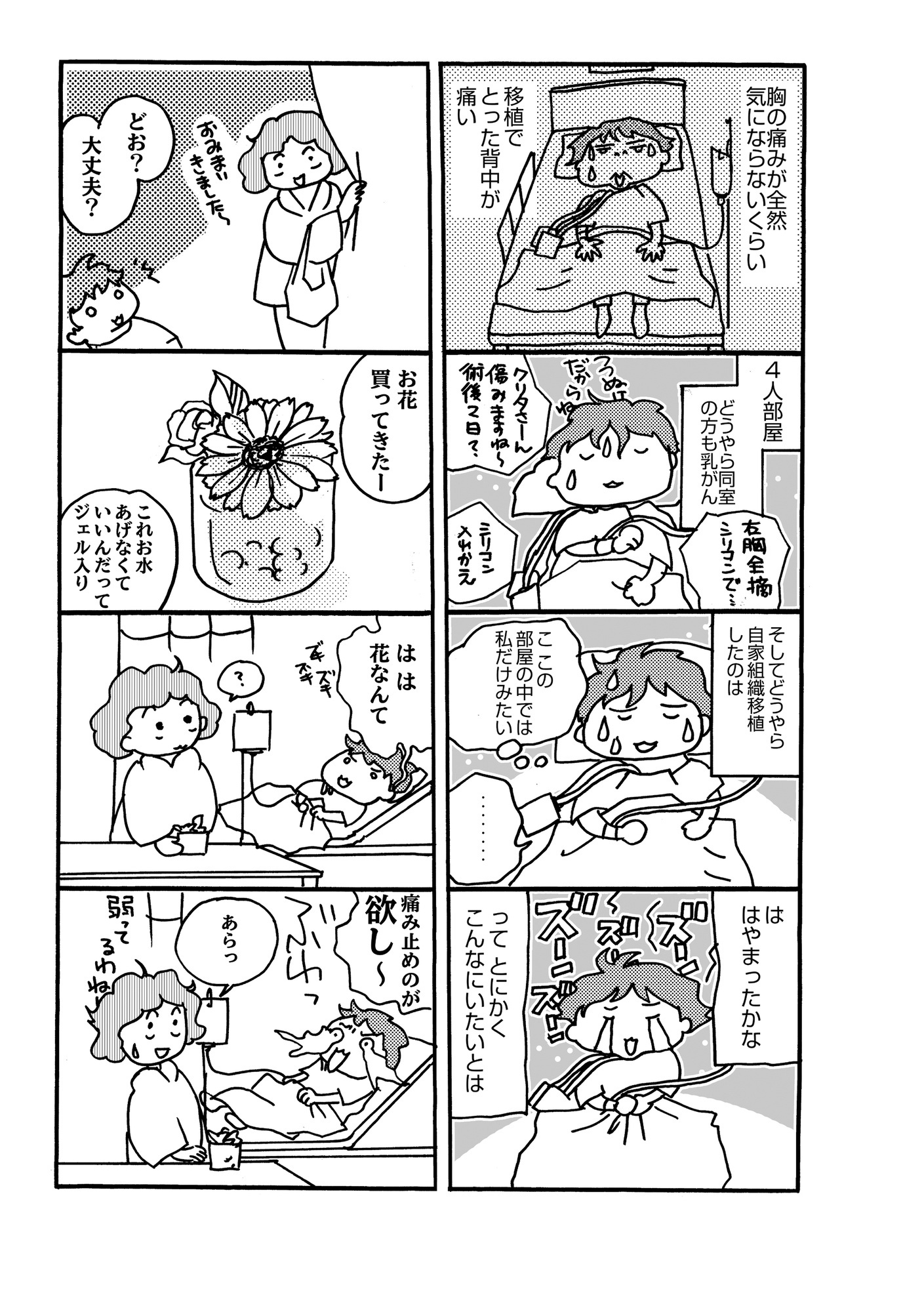 自家組織移植のあとってこんなに痛いの…?! お花よりも、痛み止めをください!!【乳がんになったけど私もおっぱいも元気です #10】