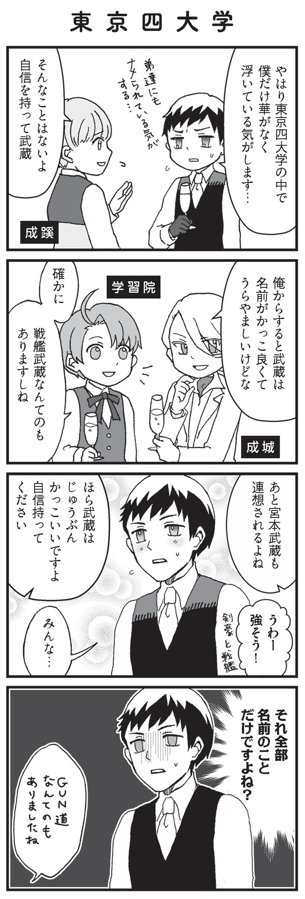 【東京四大学】「GIジョーってどこ大?」大学をまとめて呼ぶ名前、僕だけ他と違うところとは…?【擬人化マンガ 大学あるあるこれくしょん #6】