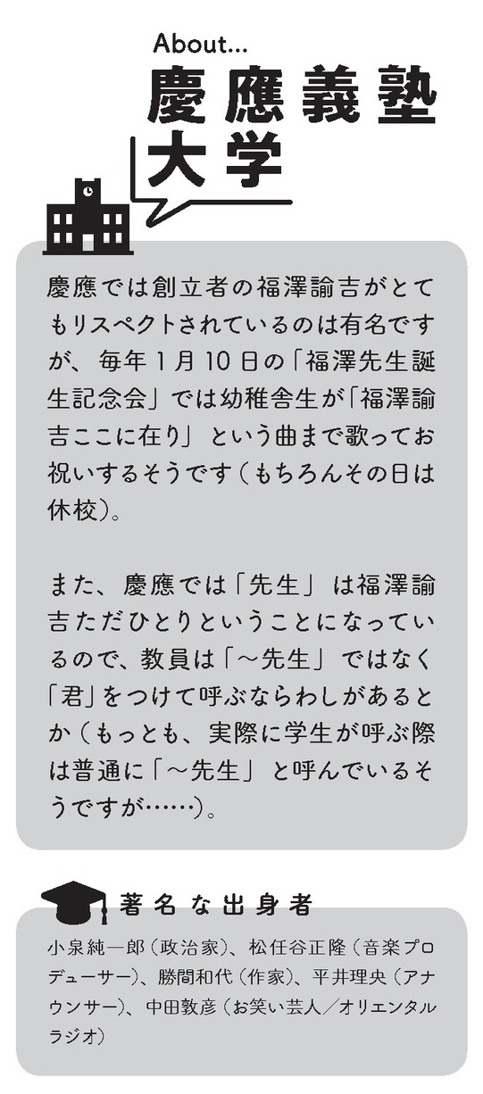 どの大学がどんな“クセ”を持つ? 首都圏・関西の国公立から私立、旧帝・理系・女子大・芸術大まで計70校をユニークに擬人化。ブログで話題を呼んだ連作が大幅加筆&描き下ろし多数で待望の書籍化。志望校や出身校の“あるある”を探してみよう!学風や学部、学食、キャンパス事情まで全方位の“あるある”ネタ満載。受験生も卒業生も楽しめる読み応えの一冊。