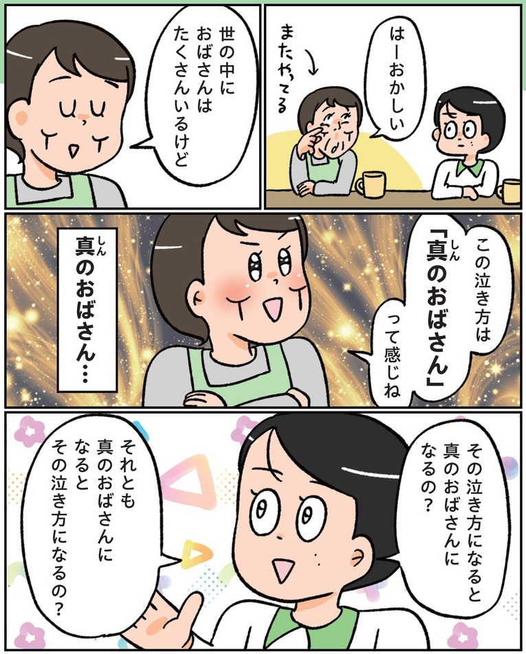 おばさんって、なんでみんなその泣き方なの?人差し指を目の下に添えて鼻の下を伸ばす…【小林一家は今日も「ま、いっか!」 #4】