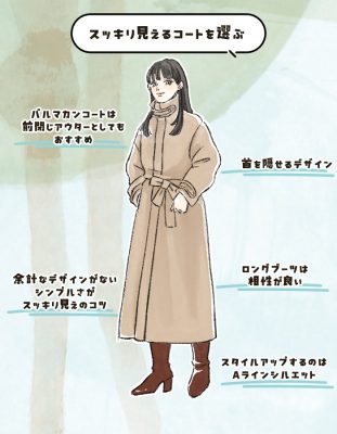 つづいての、コート全閉めでも着痩せして見える着こなし方は?