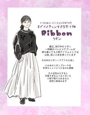 いつものシンプルなニットにボトムス……そんな手持ち服に対してちょっとマンネリを感じた時は、ベロア素材のリボンを上手に活用してみるのがおすすめです。