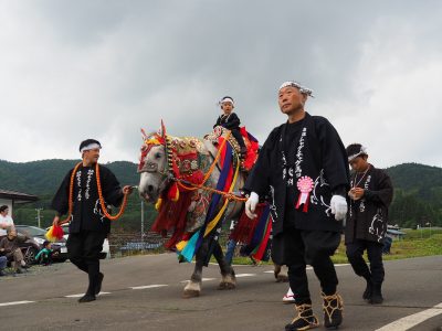 岩手は馬産地として知られ、農耕馬の守り神として知られる「保食神」をお祀りする神社。「チャグチャグ馬コ」は、無病息災、家内安全、交通安全、五穀豊穣を願うお祭りです。毎年6月第2土曜日に着飾った馬たちが、鬼越蒼前神社から盛岡八幡宮までおよそ14kmのみちのりを行進。チャグチャグ馬コの御守りや御朱印も限定でいただけます。