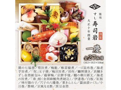 ひとり暮らしでも、おせちを楽しめる! 老舗寿司店プロデュースで、豪華な食材のお正月料理がぎゅっと詰まった1段重。お届け日は「12月29日~1月4日」と選択肢が多いのもポイント♪