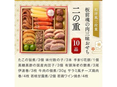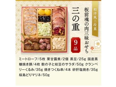(12月31日着) 板前魂の肉三昧おせち 板前魂 肉おせち 和洋風 ローストビーフステーキ 豚角煮 ユッケ風ローストビーフ 生ハム付 3人前 30品目