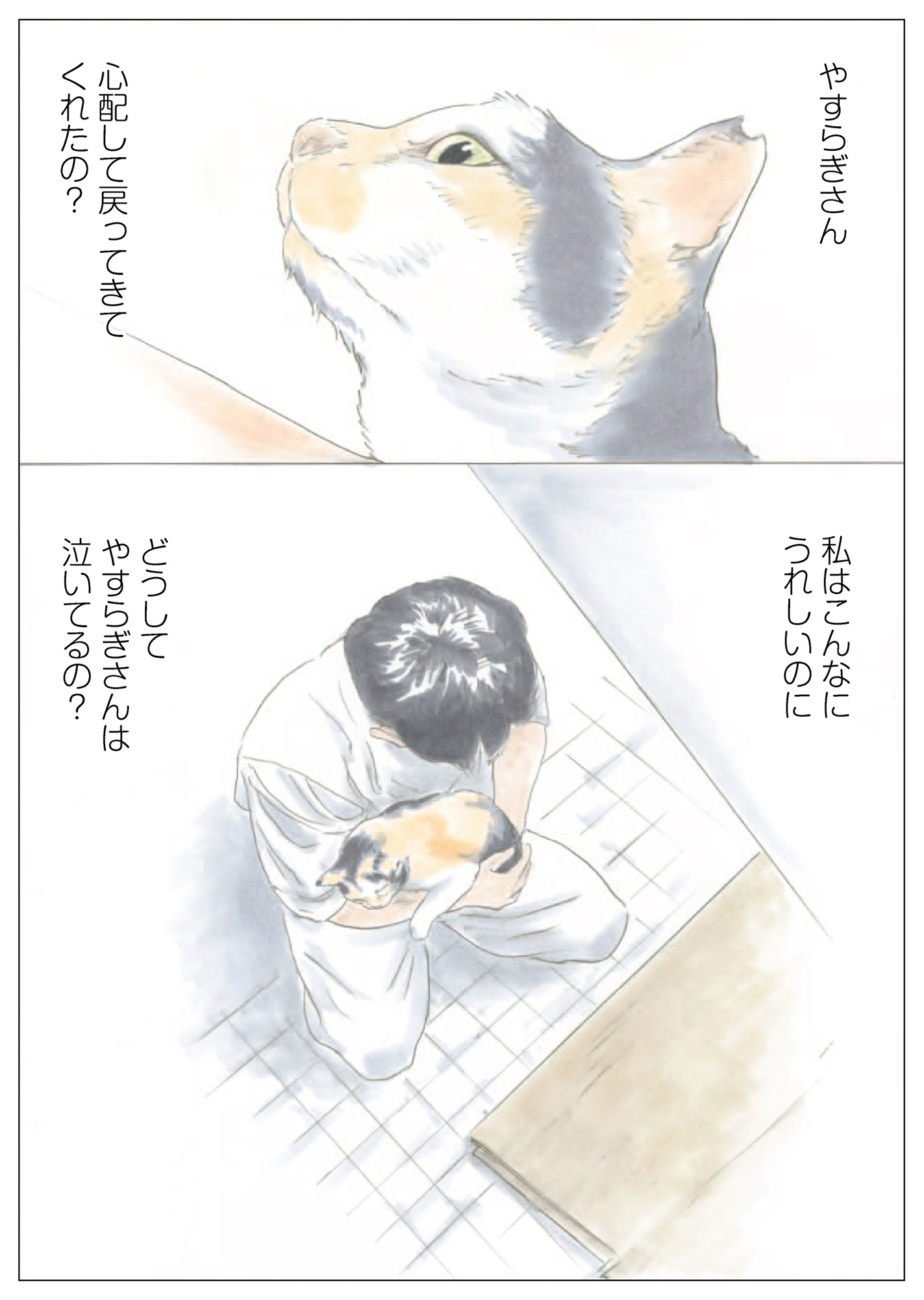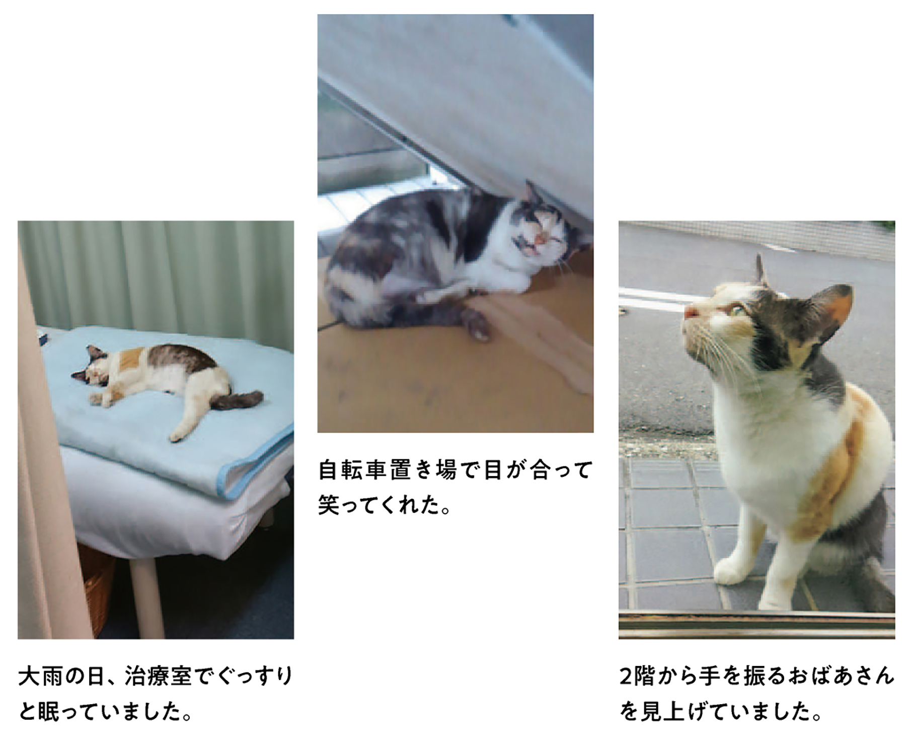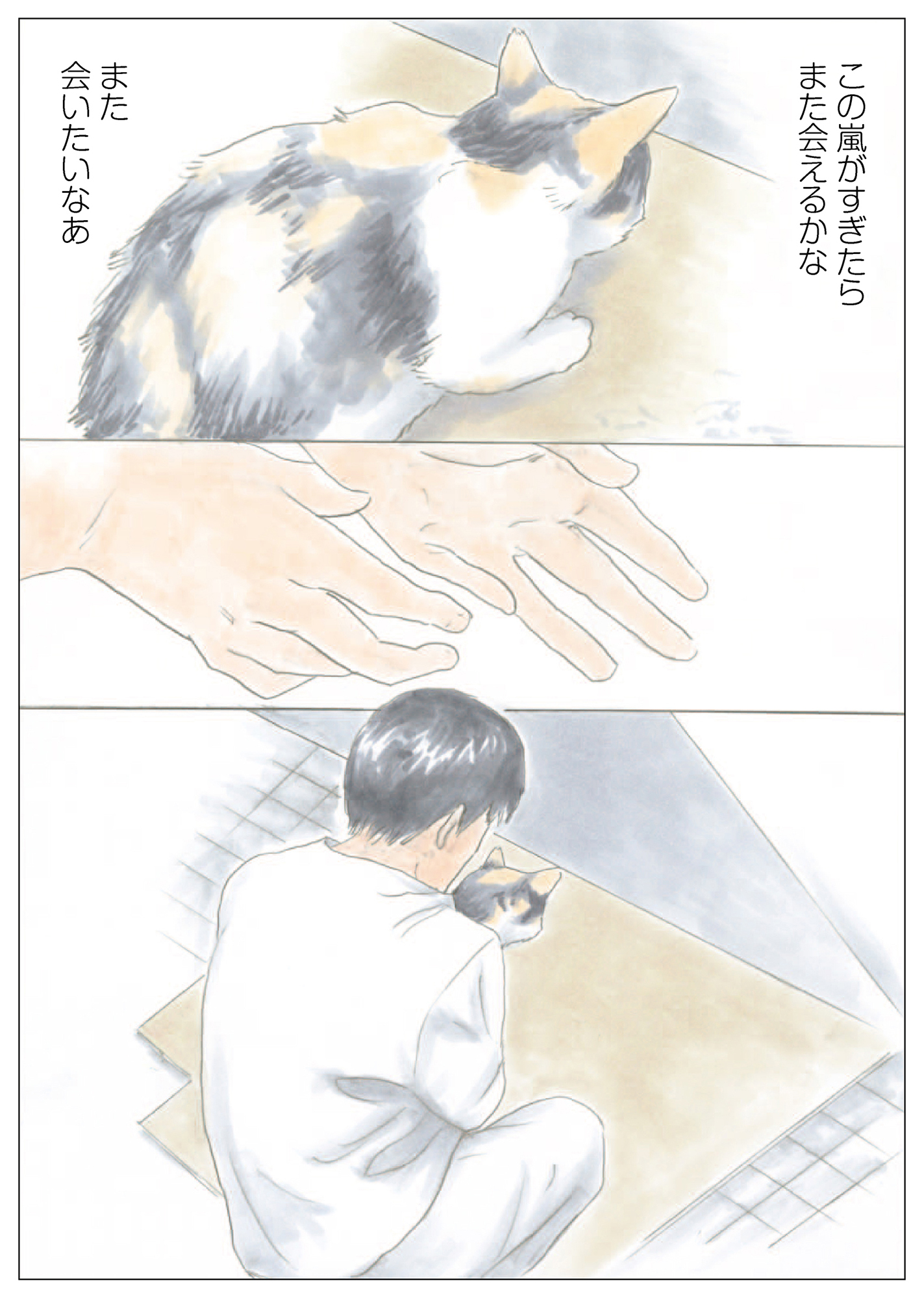 雨宿りしてたミケちゃんと目が合った時、ミケちゃんはホッとしたようにニコッと笑ってくれたんだ。他人に話せば「気のせいだよ」と言われてしまうかもしれないけど…。